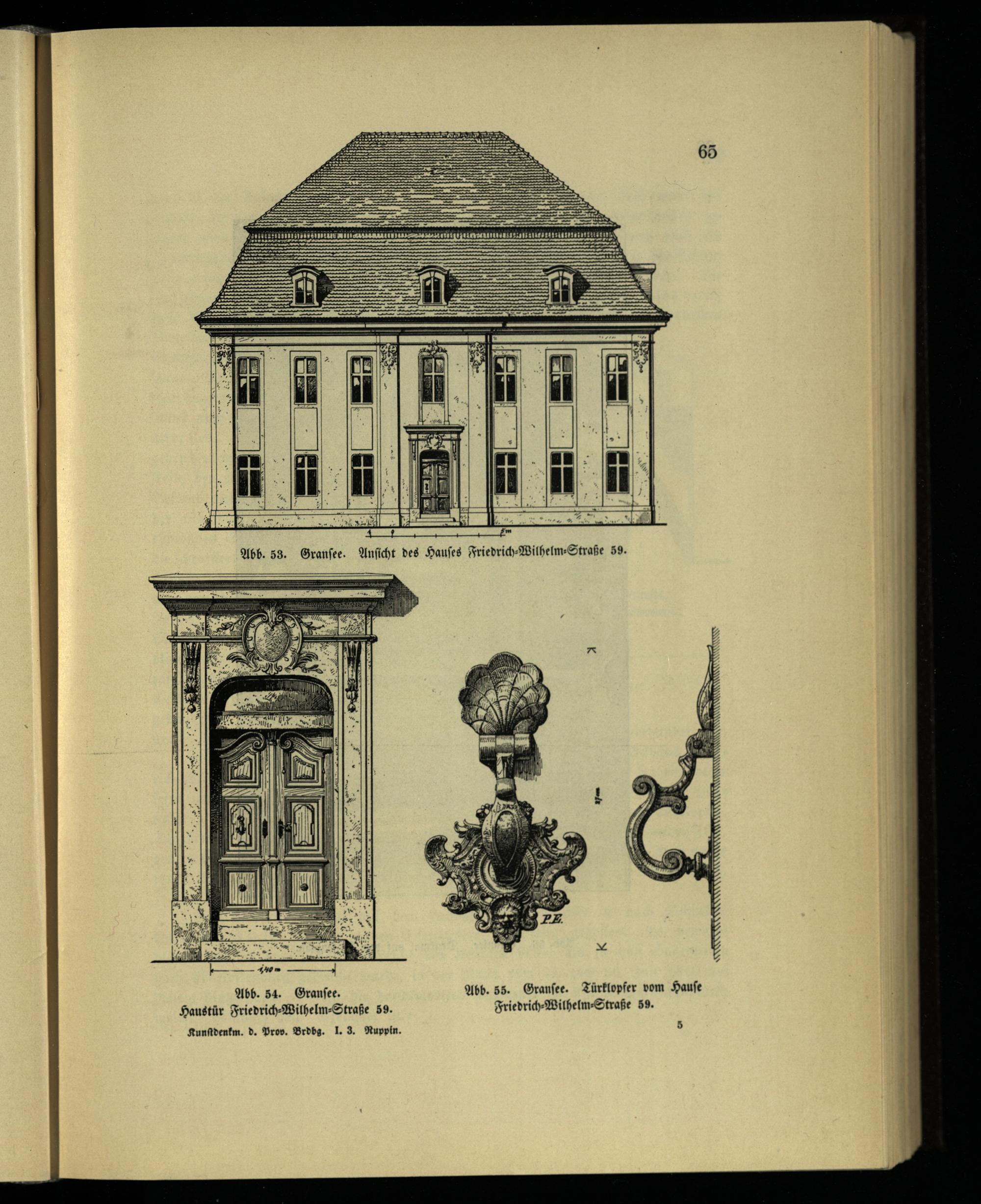 143000131300 inis MIN casa in EIFEL ers- nnen, sic, rimini Abb. 54. Granſee. Abb. 55. Granſee. Türklopfer vom Hauſe Haustür Friedrich⸗Wilhelm⸗Straße 59. Friedrich⸗Wilhelm⸗Straße 55. Kunſtdenkm. d. Prov. Brdbg. I. 3. Ruppin.