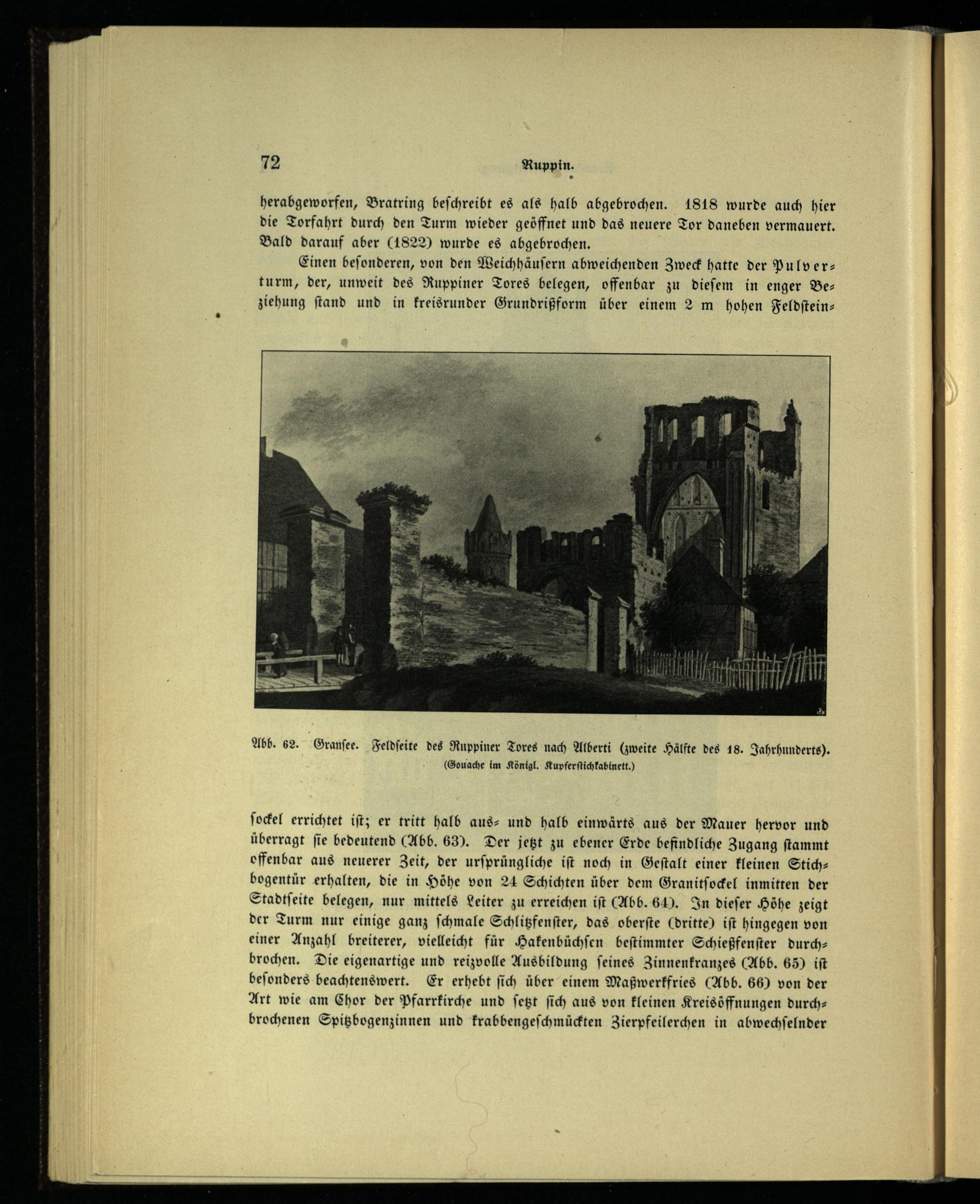 Abb. 62. Granſee . Feldſeite des Ruppiner Tores nach Alberti(zweite Hälfte des 18. Jahrhunderts). (Gouache im Königl. Kupferſtichkabinett.)