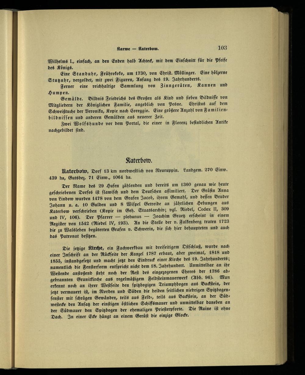 RKaterbow, Dorf 13 km nordweſtlich von Neuruppin . Landgem. 270 Einw. 439 ha, Gutsbez. 71 Einw., 1064 ha.