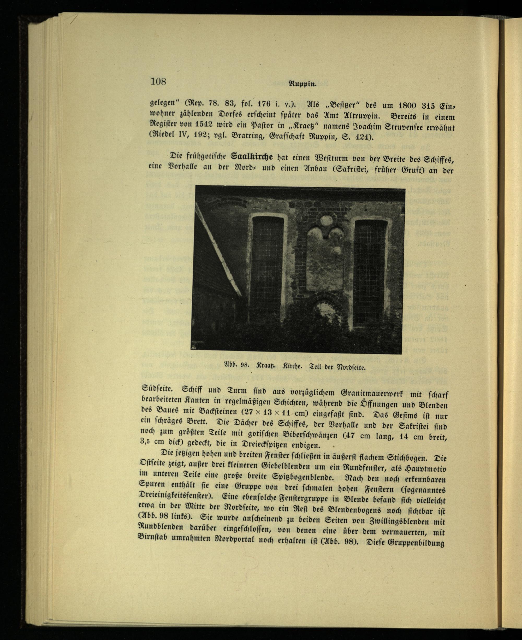 gelegen“(Rep. 78. 83, fol. 176 i. v. Als„Beſitzer“ des um 1800 315 Einwohner zählenden Dorfes erſcheint ſpäter das Amt Altruppin . Bereits in einem Regiſter von 1542 wird ein Paſtor in„Kraetz“ namens Joachim Struvenſee erwähnt Miedel IV, 192; vgl. Bratring, Grafſchaft Ruppin , S. 424).