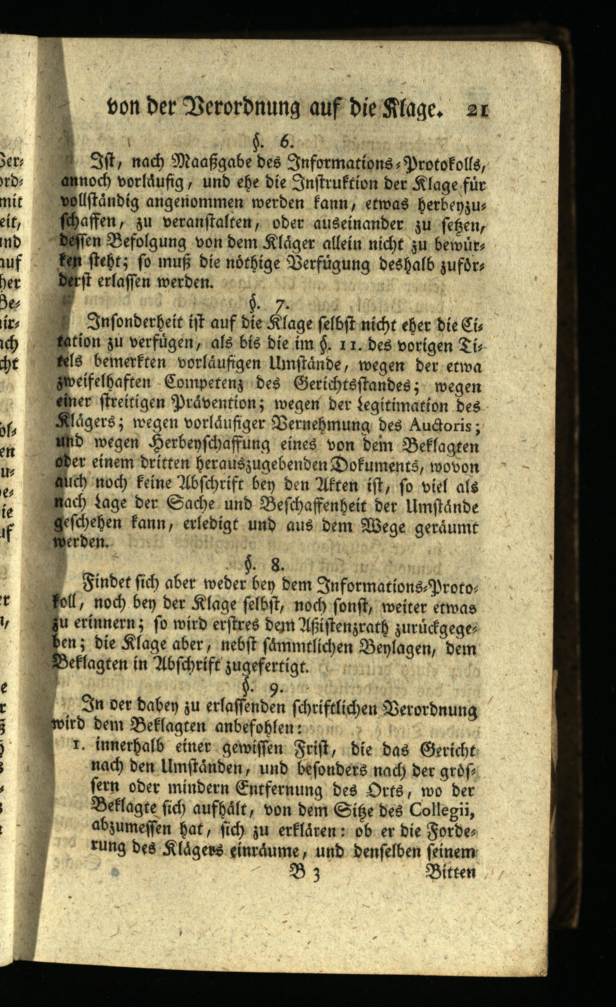 Findet sich aber weder bey dem Informations- Protokoll, noch bey der Klage selbst, noch sonst, weiter etwas zu erinnern; so wird erstres dem Aßistenzrath zurückgege ben; die Klage aber, nebst sämmtlichen Beylagen, dem Beklagten in Abschrift zugefertigt.