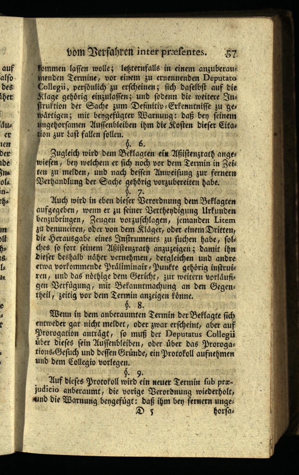 kommen lassen wolle; legternfalls in einem anzuberaus menden Termine, vor einem zu ernennenden Deputato Collegii, persönlich zu erscheinen; sich daselbst auf die Klage gehörig einzulassen; und sodenn die weitere In struktion der Sache zum Definitiv Erkenntnisse zu ges wärtigen; mit beygefügter Warnung: daß bey seinem ungehorsamen Aussenbleiben ihm die Kosten dieser Cita tion zur last fallen sollen.