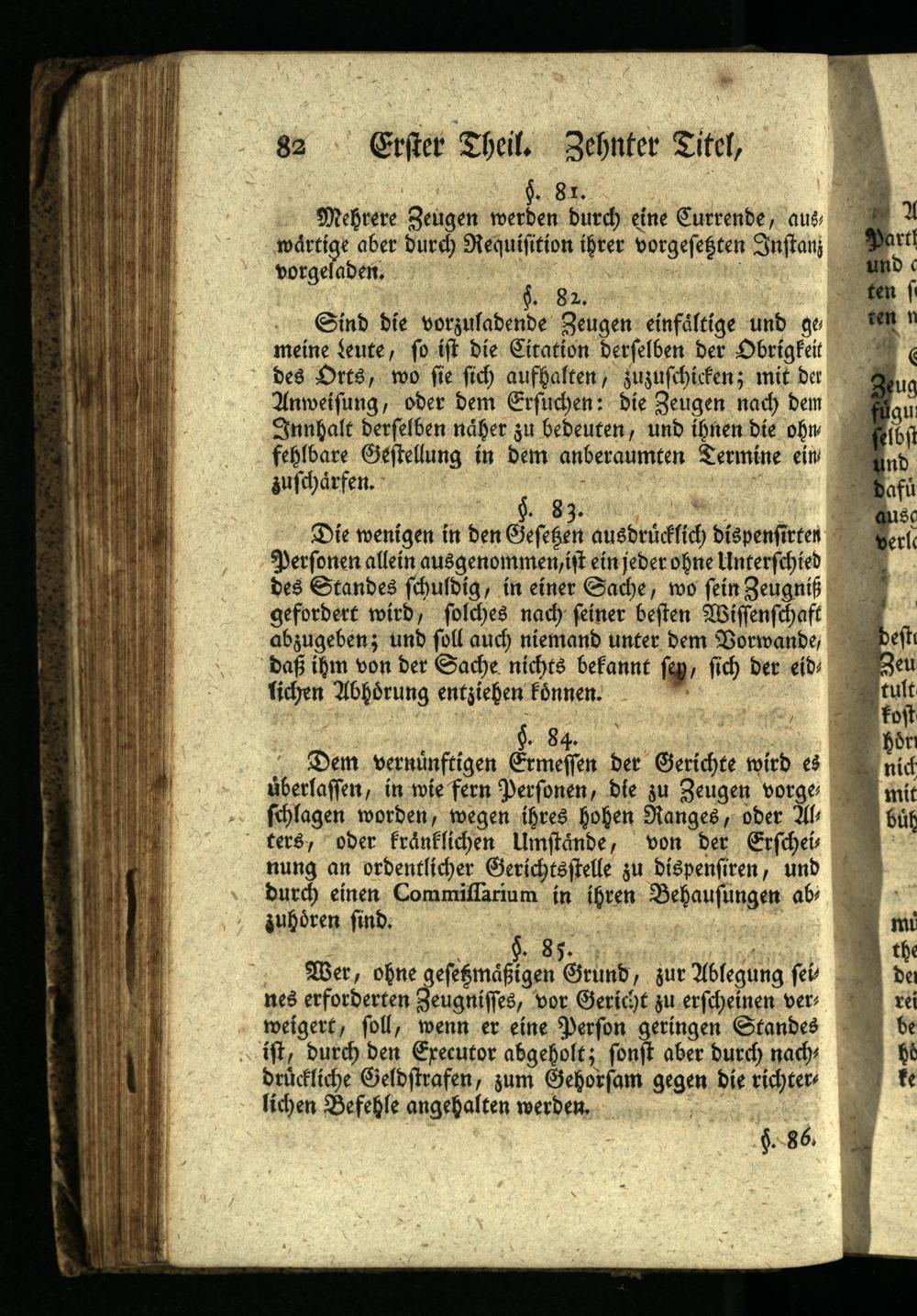 Wer, ohne gesetzmäßigen Grund, zur Ablegung sei nes erforderten Zeugnisses, vor Gericht zu erscheinen ver weigert, soll, wenn er eine Person geringen Standes ist, durch den Executor abgeholt; sonst aber durch nach drückliche Geldstrafen, zum Gehorsam gegen die richter lichen Befehle angehalten werden.