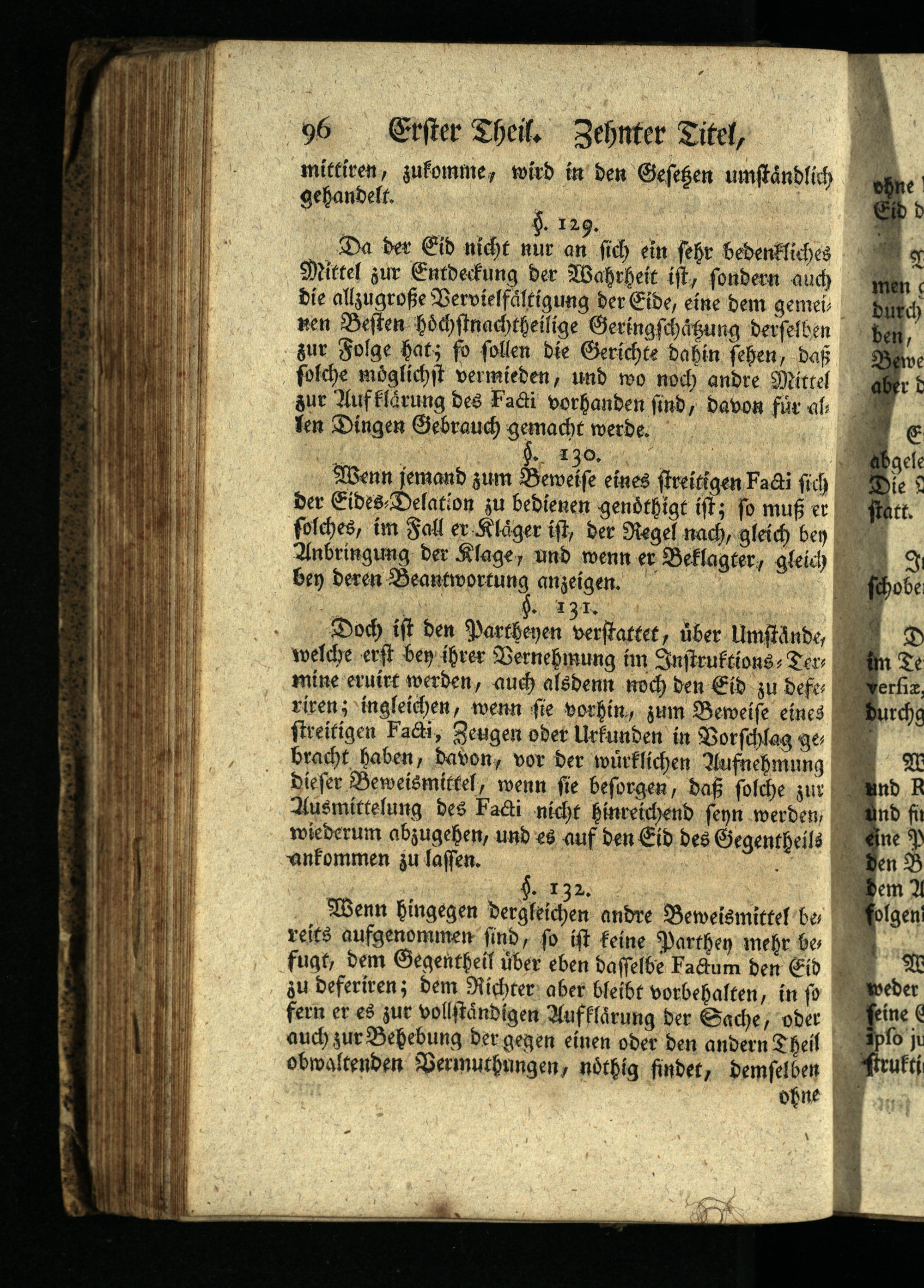 Da der Eid nicht nur an sich ein sehr bedenkliches Mittel zur Entdeckung der Wahrheit ist, sondern auch die allzugroße Vervielfältigung der Eide, eine dem gemei nen Besten höchstnachtheilige Geringschäßung derselben zur Folge hat; fo sollen die Gerichte dahin sehen, daß folche möglichst vermieden, und wo noch andre Mittel zur Aufklärung des Facti vorhanden sind, davon für al Ten Dingen Gebrauch gemacht werde.