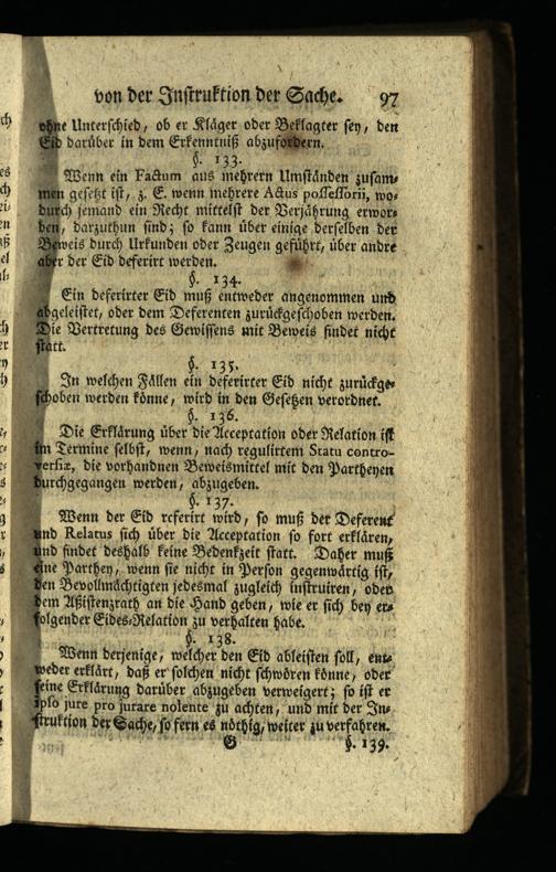 In welchen Fällen ein deferirter Eid nicht zurückge schoben werden könne, wird in den Gefeßen verordnet. §. 136.