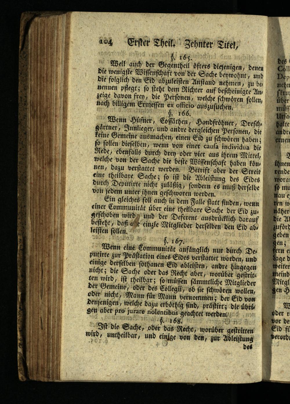Ein gleiches foll auch in dem Falle statt finden, wenn einer Communität über eine theilbare Sache der Eid zus geschoben wird und der Deferent ausdrücklich darauf besteht, daß de einzle Mitglieder derselben den Eid ab, leisten sollen.