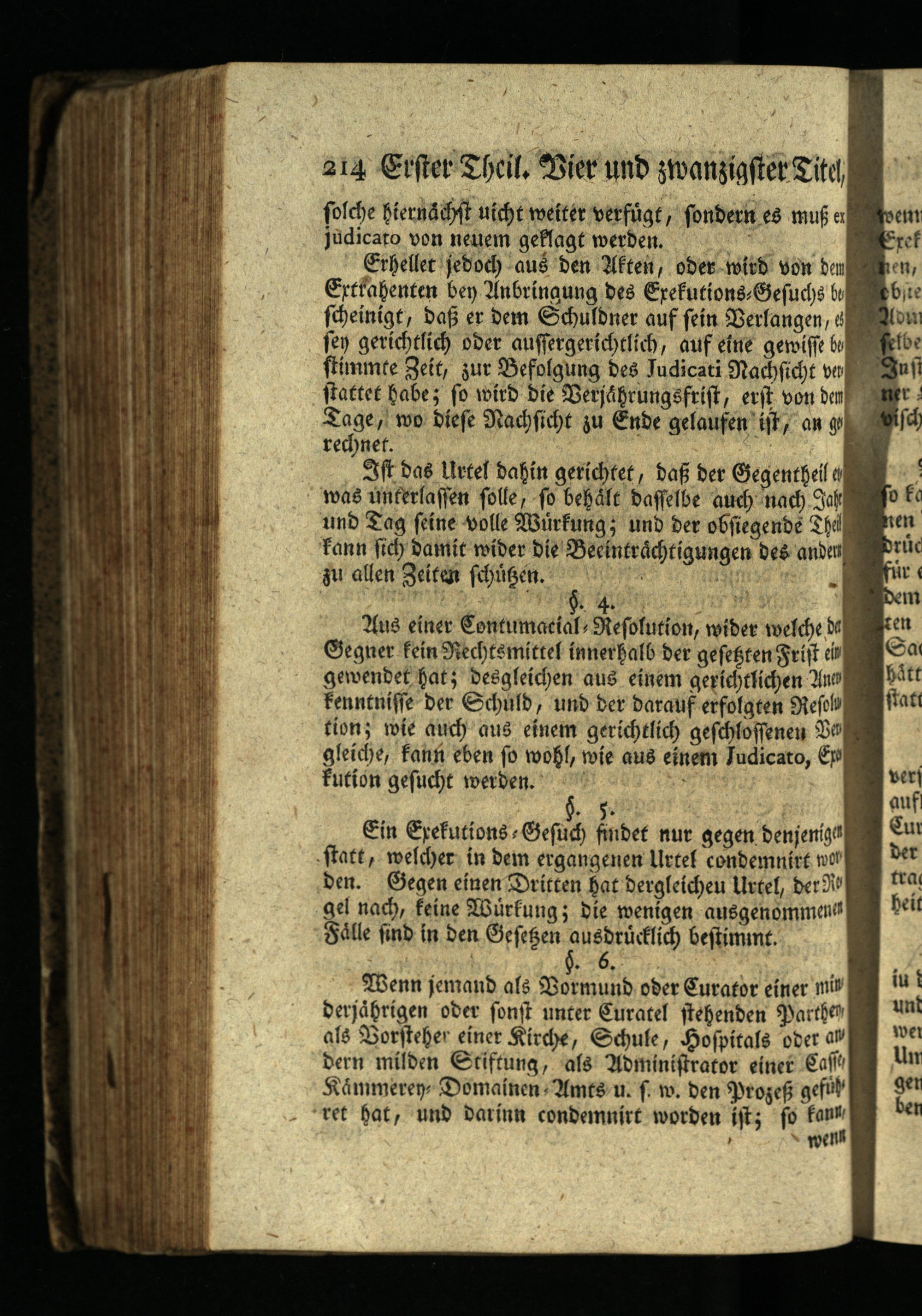 Wenn jemand als Vormund oder Curator einer min derjährigen oder sonst unter Curatel stehenden Parthen als Vorsteher einer Kirche, Schule, Hospitals oder an dern milden Stiftung, als Administrator einer Caffe Kammeren Domainen Amts u. f. w. den Prozeß gefüh ret hat, und darinn condemnirt worden ist; so kann