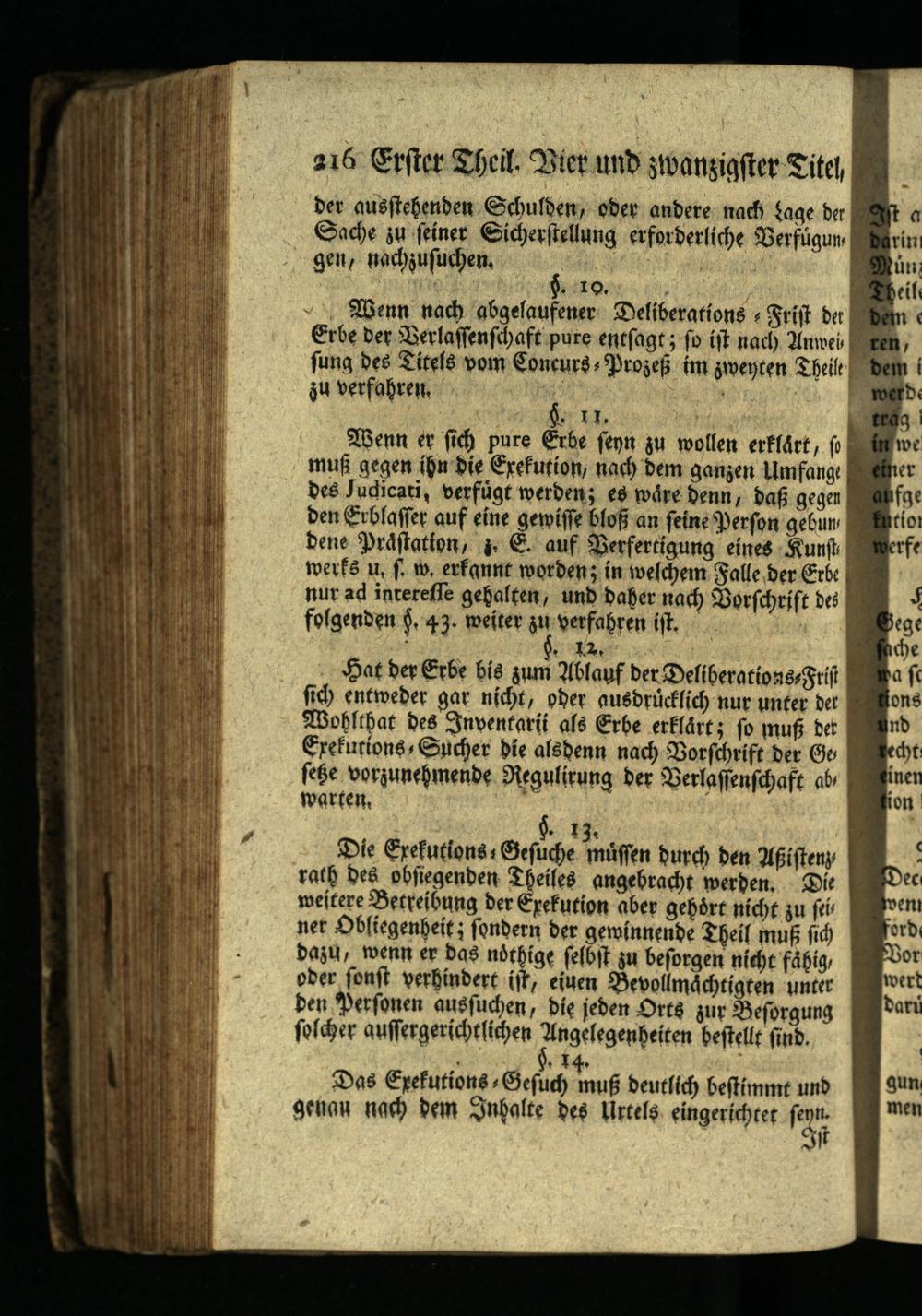 Hat der Erbe bis zum Ablauf der Deliberations- Frist fich entweder gar nicht, oder ausdrücklich nur unter der Wohlthat des Inventarii als Erbe erklärt; so muß der Exekutions Sucher die alsdenn nach Vorschrift der Ge feße vorzunehmende Regulirung der Verlassenschaft abs warten.