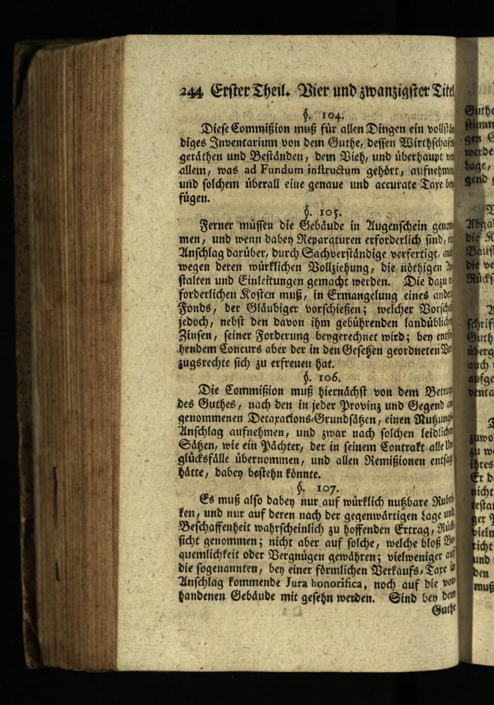 Diese Commißion muß für allen Dingen ein voll fin diges Inventarium von dem Guthe, deffen Wirthschaft gen gerathen und Bestånden, dem Vieh, und überhaupt vo allem, was ad Fundum inftructum gehört, aufnehma age, und solchem überall eine genaue und accurate Tare be fügen.