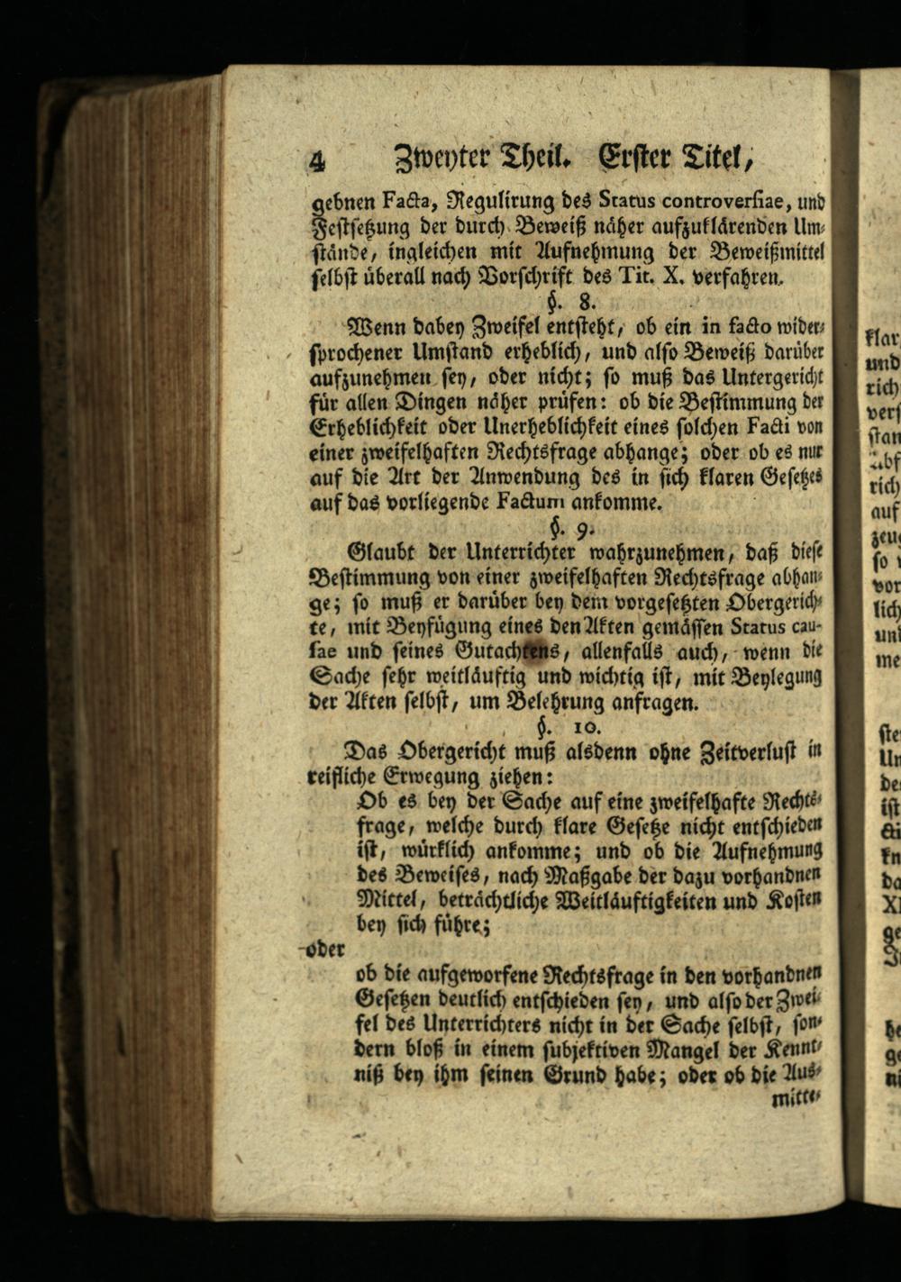 Wenn daben Zweifel entsteht, ob ein in facto widers sprochener Umstand erheblich, und also Beweiß darüber aufzunehmen sen, oder nicht; so muß das Untergericht für allen Dingen nåher prüfen: ob die Bestimmung der Erheblichkeit oder Unerheblichkeit eines solchen Facti von einer zweifelhaften Rechtsfrage abhange; oder ob es nur auf die Art der Anwendung des in sich klaren Gesezes auf das vorliegende Factum ankomme.
