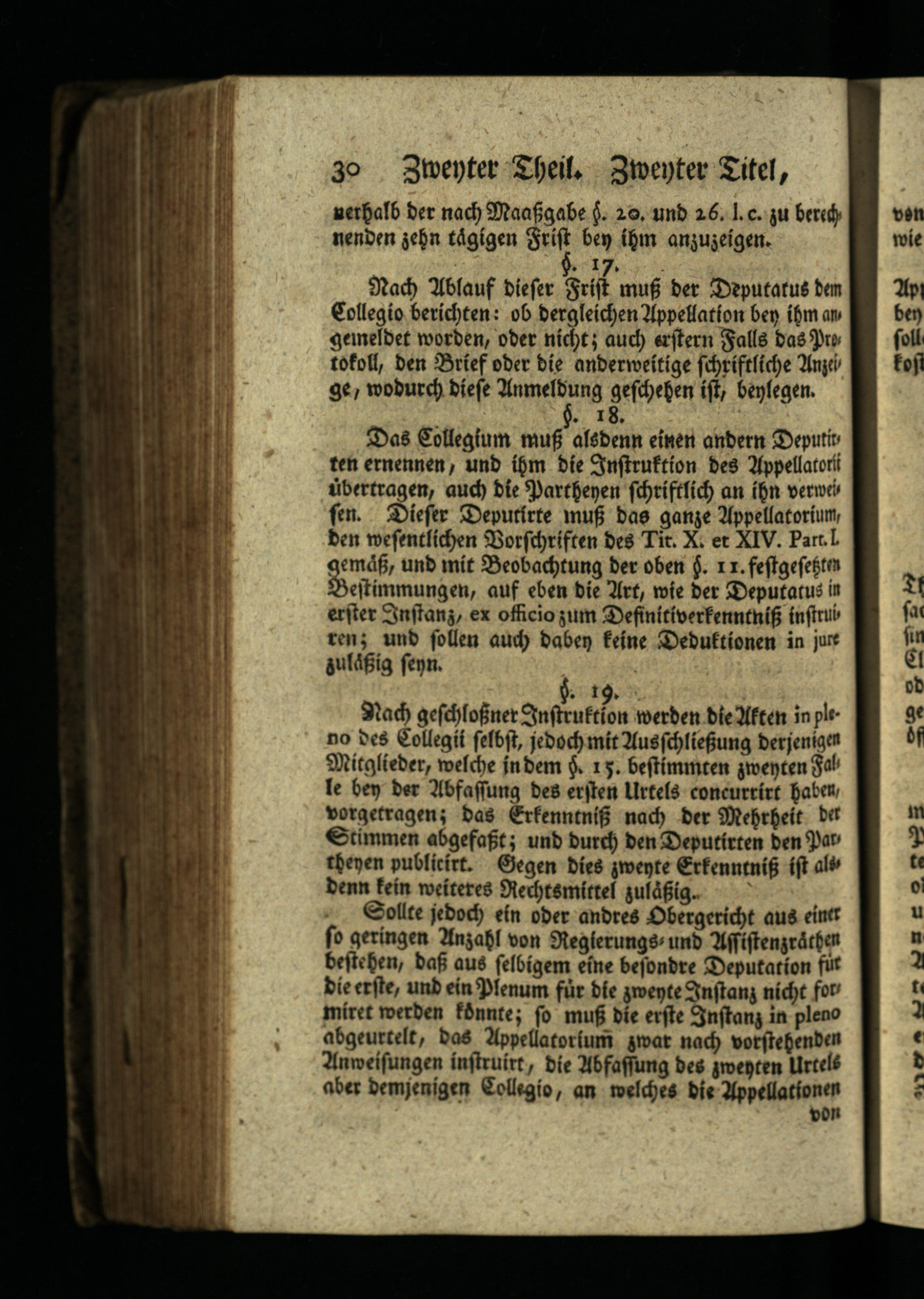 Nach Ablauf dieser Frist muß der Deputatus dem Collegio berichten: ob dergleichen Appellation bey ihm an gemeldet worden, oder nicht; auch erstern Falls das Pro tokoll, den Brief oder die anderweitige schriftliche Anzei ge, wodurch diese Anmeldung geschehen ist, benlegen. §. 18.