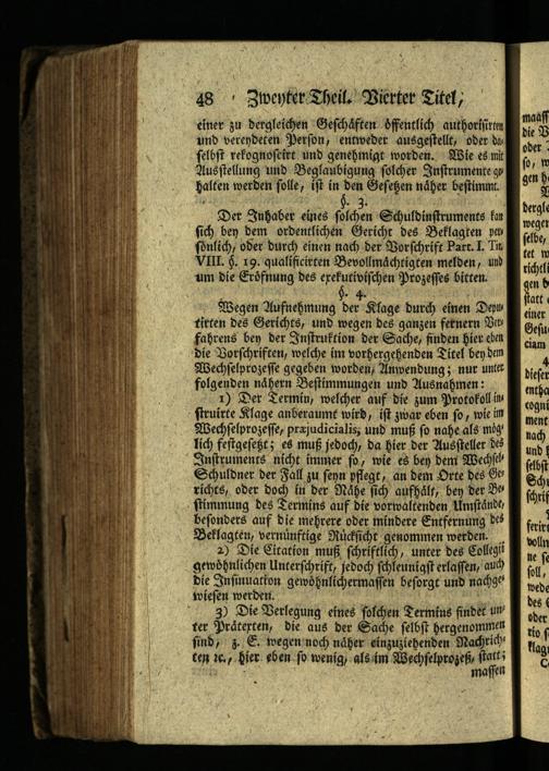 3) Die Verlegung eines solchen Termins findet un ter Pråterten, die aus der Sache selbst hergenommen sind, z. E. wegen noch näher einzuziehenden Nachrich ten zc., hier eben so wenig, als im Wechselprozeß, statt;