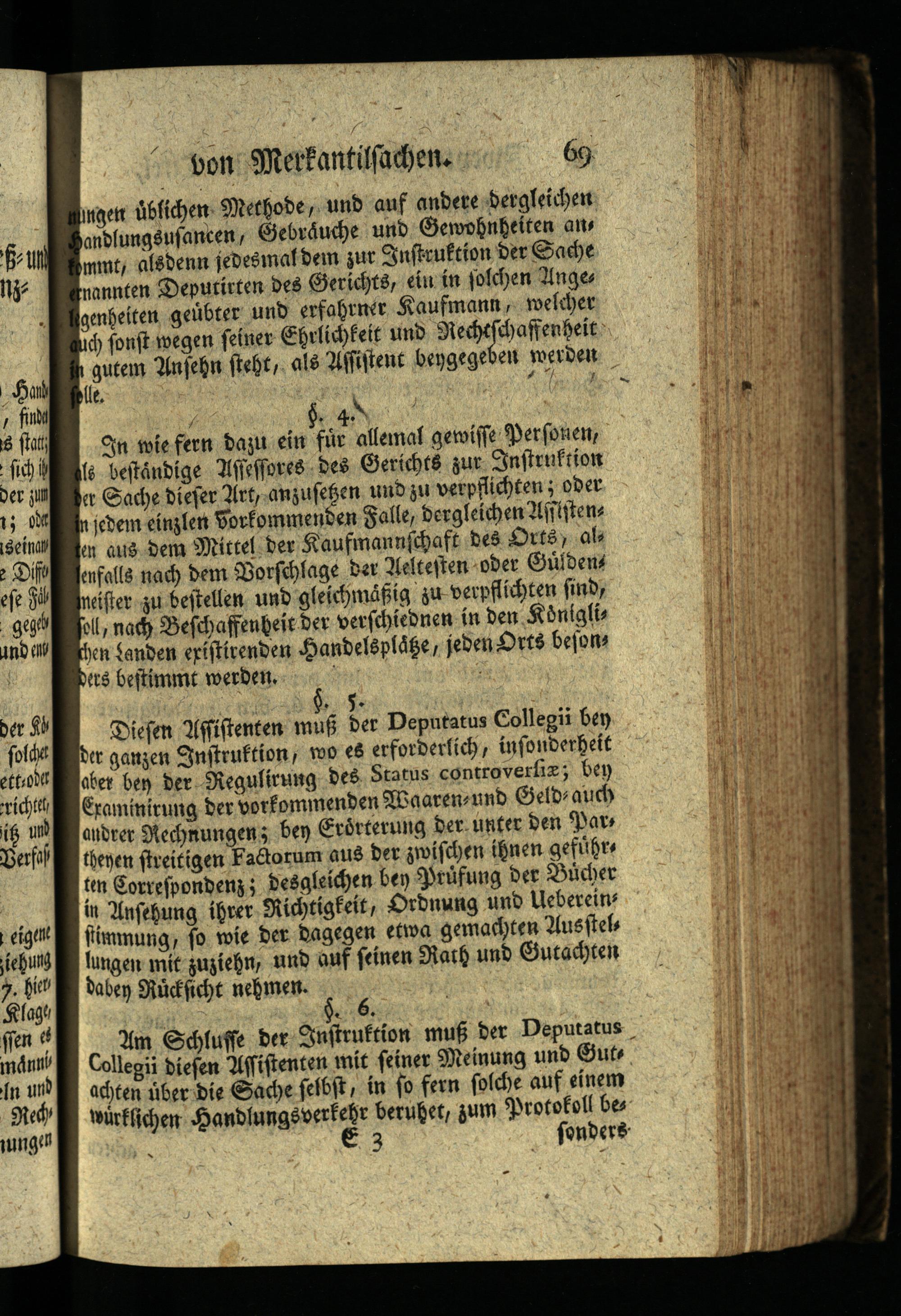 Diesen Assistenten muß der Deputatus Collegii ben der ganzen Instruktion, wo es erforderlich, insonderheit aber ben der Regulirung des Status controverfia; bey Examinirung der vorkommenden Waaren und Geld auch andrer Rechnungen; ben Erörterung der unter den Pars theyen streitigen Factorum aus der zwischen ihnen geführ ten Correspondenz; desgleichen ben Prüfung der Bücher in Ansehung ihrer Richtigkeit, Ordnung und Uebereins ftimmung, so wie der dagegen etwa gemachten Ausstels lungen mit zuziehn, und auf seinen Rath und Gutachten daben Rücksicht nehmen.