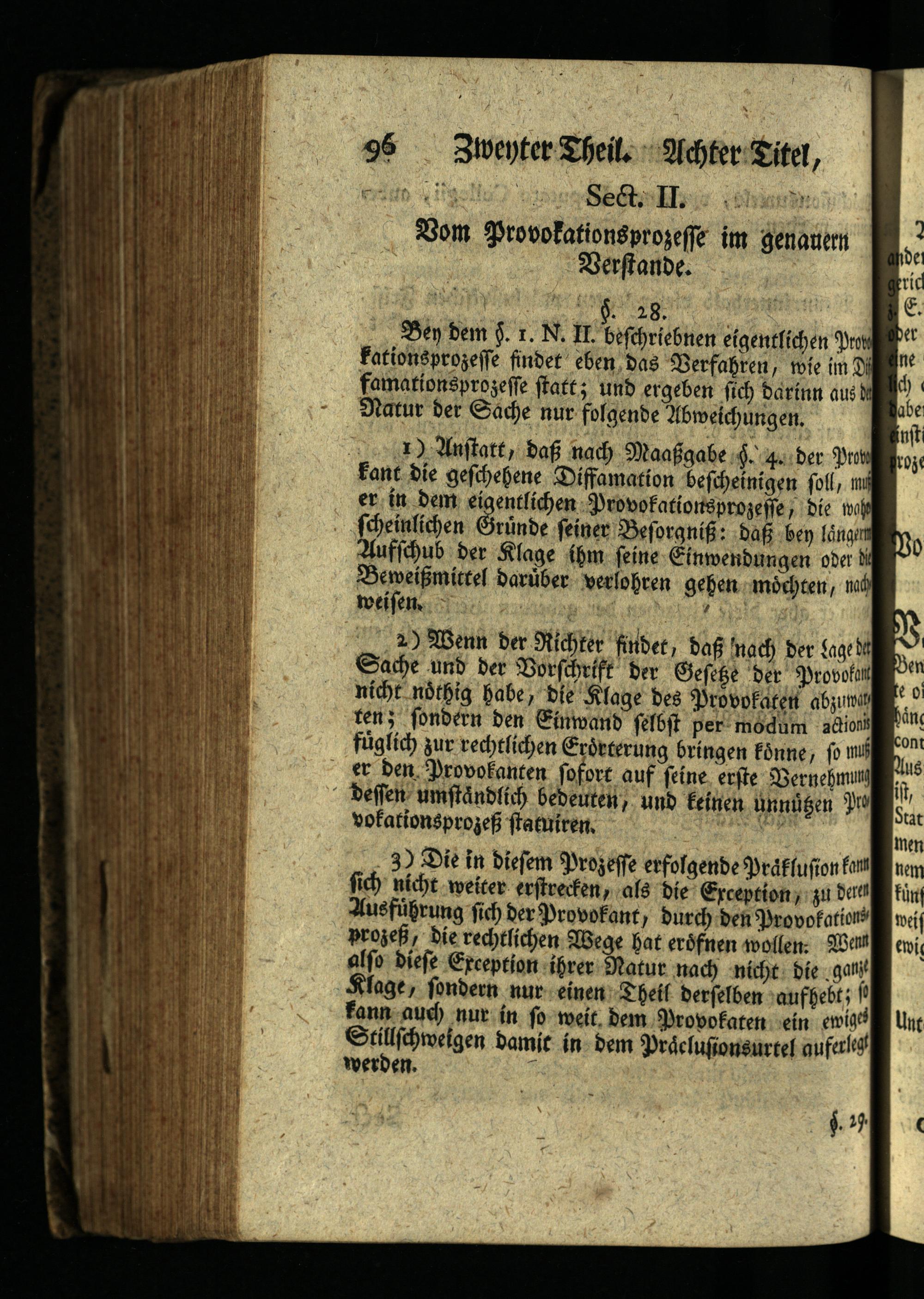 3) Die in diesem Prozesse erfolgende Präflufion fan nem sich nicht weiter erstrecken, als die Exception, zu deren fün Ausführung sich der Provokant, durch den Provokationsweis prozeß, die rechtlichen Wege hat erdfnen wollen. Wenn ewig also diese Exception ihrer Natur nach nicht die ganze Klage, sondern nur einen Theil derselben aufhebt; 1 fann auch nur in so weit, dem Provokaten ein ewiges Unt Stillschweigen damit in dem Präclusionsurtel auferlegt werden.