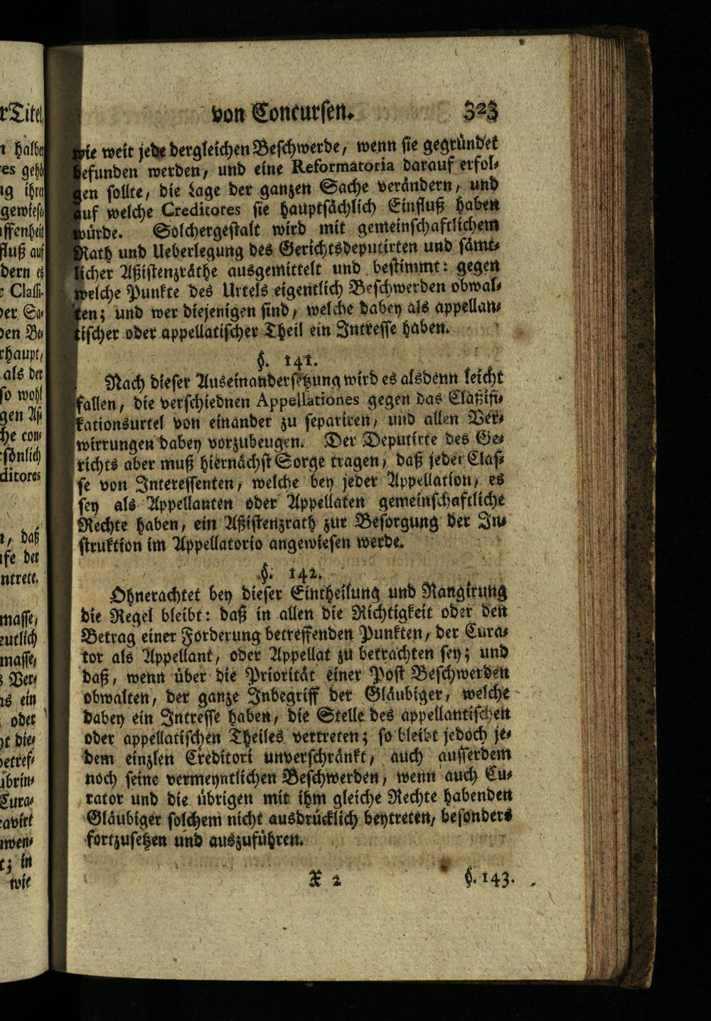wie weit jede dergleichen Beschwerde, wenn sie gegründet befunden werden, und eine Reformatoria darauf erfol gen sollte, die lage der ganzen Sache verändern, und auf welche Creditores sie hauptsächlich Einfluß haben würde. Solchergestalt wird mit gemeinschaftlichem Rath und Ueberlegung des Gerichtsdeputirten und sämt licher Aßistenzråthe ausgemittelt und bestimmt: gegen welche Punkte des Urtels eigentlich Beschwerden obwals ten; und wer diejenigen sind, welche daben als appellan tischer oder appellatischer Theil ein Intresse haben.