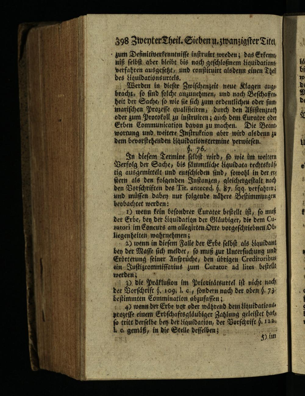 1) wenn kein besondrer Curator bestellt ist, so muß der Erbe, bey der Liquidation der Gläubiger, die dem Curatori im Concurs am allegirten Orte vorgeschriebnen Ob liegenheiten wahrnehmen;