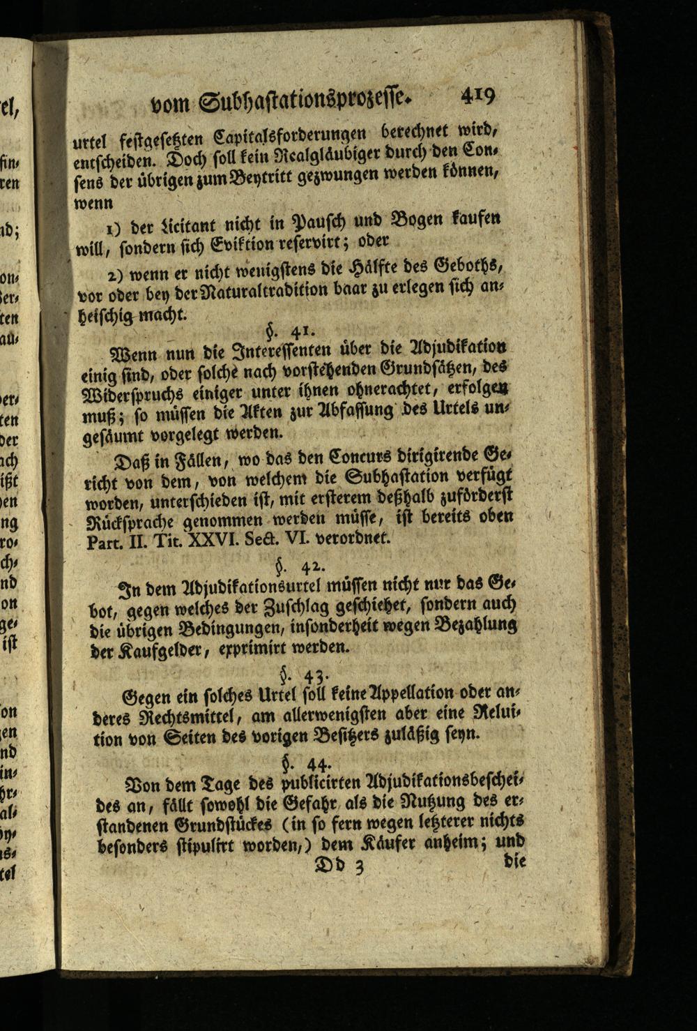In dem Adjudikationsurtel müssen nicht nur das Ges bot, gegen welches der Zuschlag geschiehet, sondern auch die übrigen Bedingungen, insonderheit wegen Bezahlung der Kaufgelder, exprimirt werden.