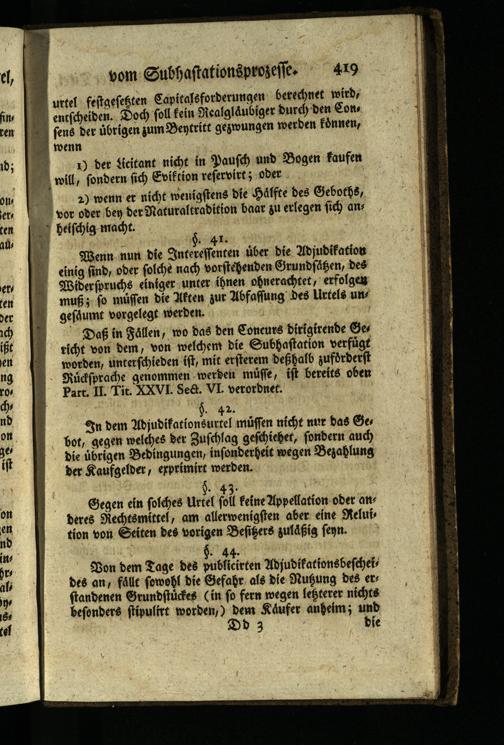 Von dem Tage des publicirten Adjudikationsbeschei des an, fällt sowohl die Gefahr, als die Nutzung des er standenen Grundstückes( in so fern wegen letzterer nichts besonders stipulirt worden,) dem Käufer anheim; und