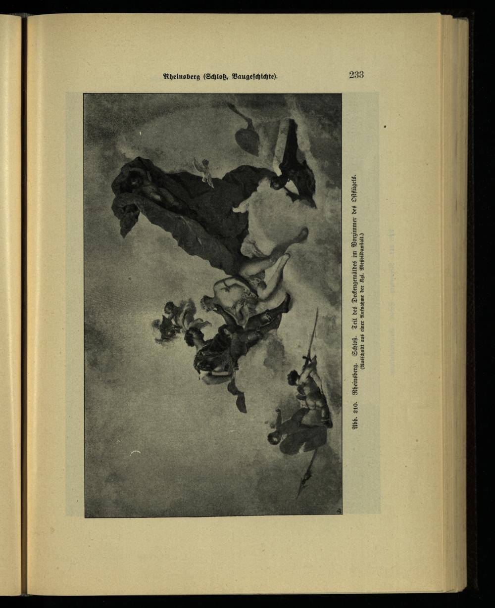 Rheinsberg ( Schloß, Baugeschichte). 233 Abb. 210. Rheinsberg . Schloß. Teil des Deckengemäldes im Vorzimmer des Ostflügels. ( Ausschnitt aus einer Aufnahme der Kgl. Meßbildanstalt.)