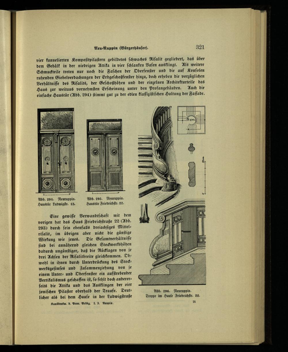 Abb. 294. Neuruppin. Abb. 295. Neuruppin. Haustür Ludwigſtr. 13. Haustür Friedrichſtr. 22.