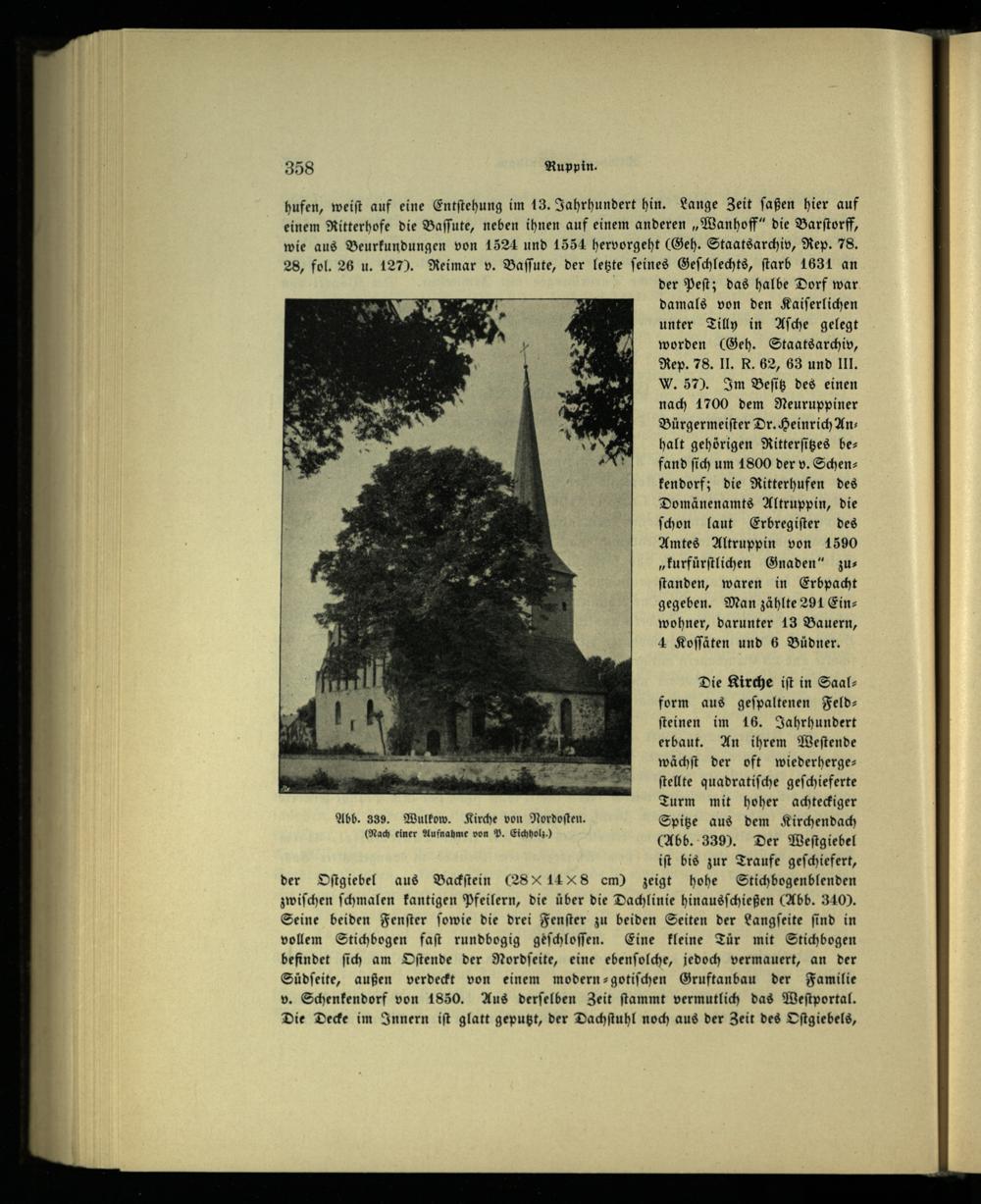 Abb. 339. Wulkow. Kirche von Nordoſten. Spitze aus dem Kirchendach