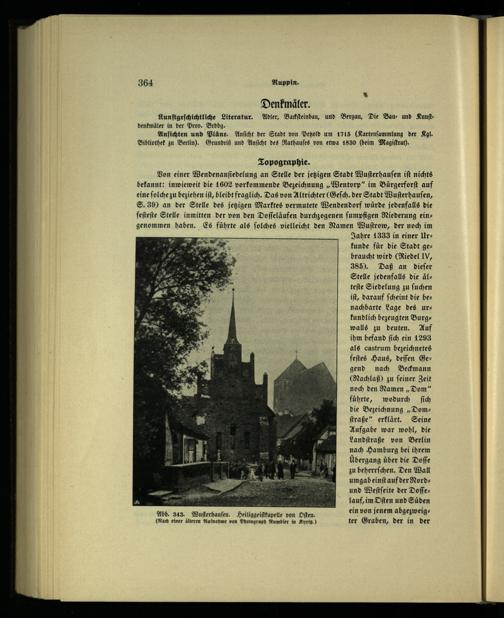 denkmäler in der Prov. Brdbg. Anſichten und Pläne. Anſicht der Stadt von Petzold um 1715(Kartenſammlung der Kgl. Bibliothek zu Berlin ). Grundriß und Anſicht des Rathauſes von etwa 1830(beim Magiſtrat.