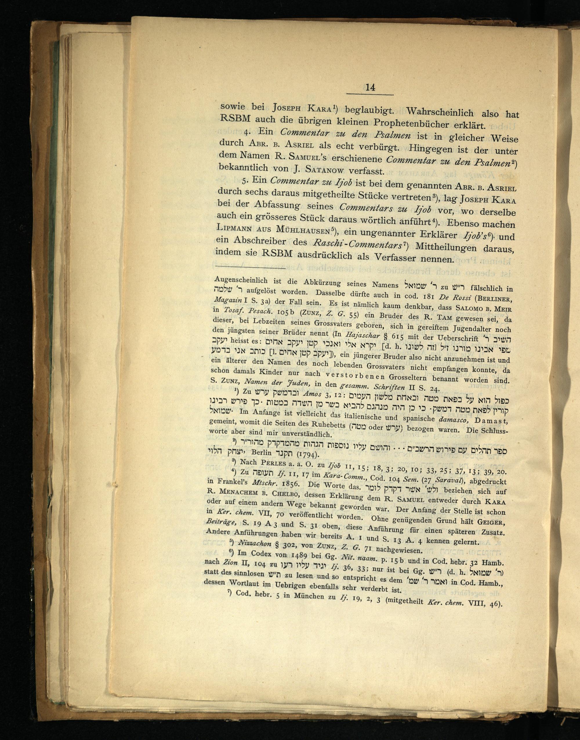 4. Ein Commentar zu den Psalmen ist in gleicher Weise durch Azsr. 3. Asrızır als echt verbürgt. Hingegen ist der unter dem Namen R. Samvzr’s‘ erschienene Commentar zu den Psalmen?) bekanntlich von J. SaTAanow verfasst,