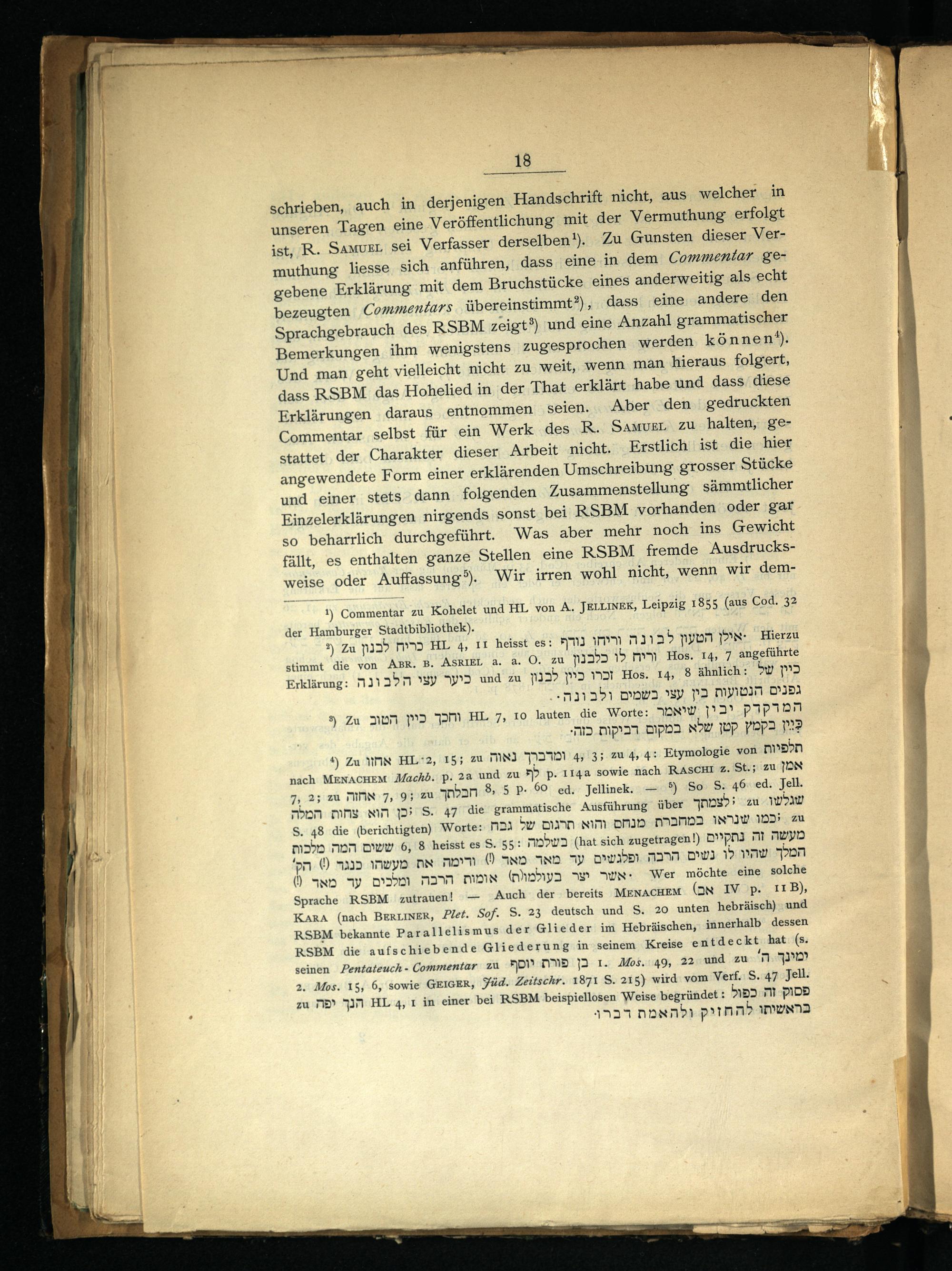 1) Commentar zu Kohelet und HL von A. JELLINEK, Leipzig 1855(aus Cod. 32 der Hamburger Stadtbibliothek).