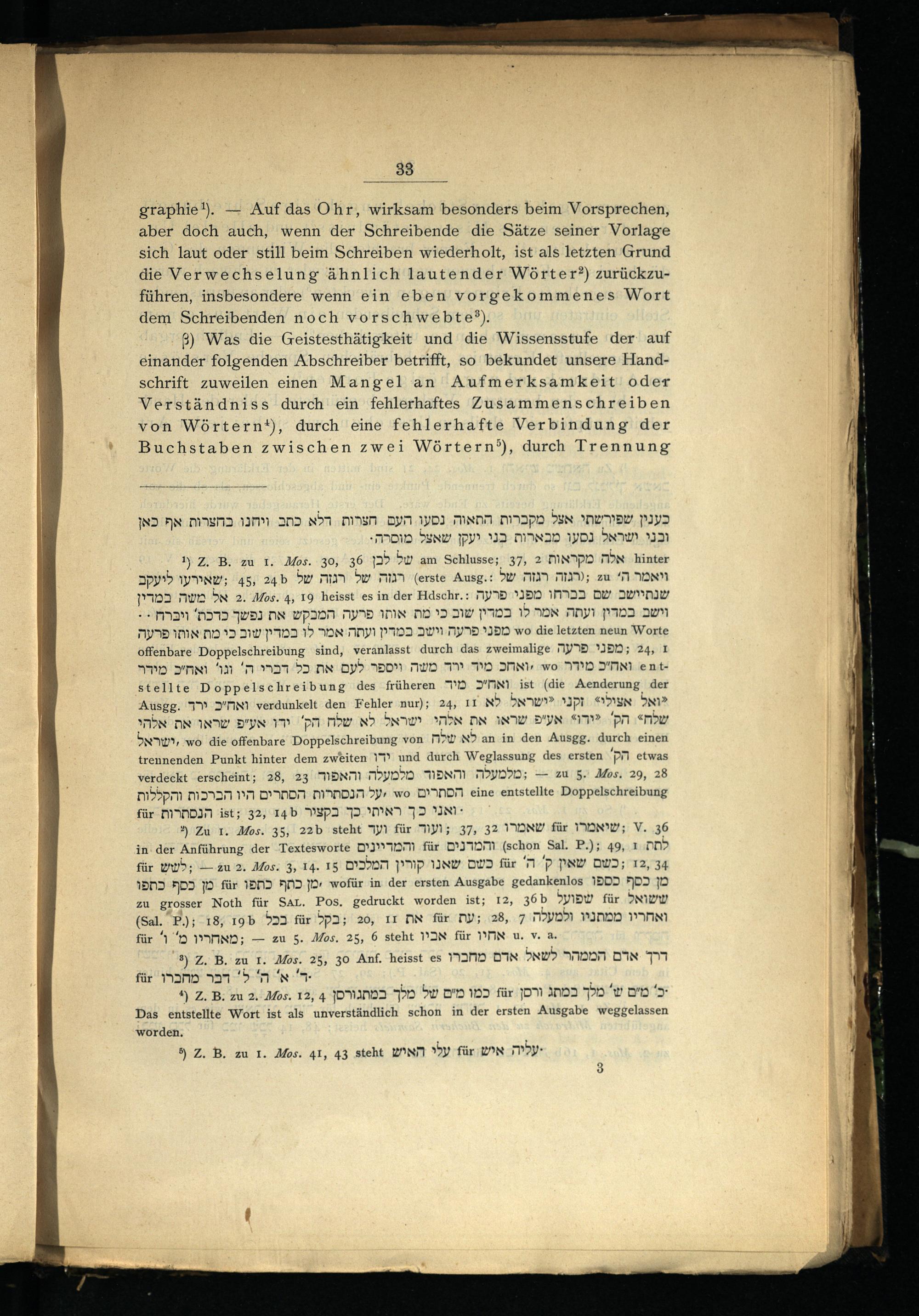 1 ZB. zu 1. Mos. 30, 36 25 by am Schlusse; 37, 2 MIND ON hinter ap se 45, 24 b bw m bw mn(erste Ausg.: Dr MM A); zu 47 NY 1702 MR 5x 2. Mos. 4; 19 heisst es in der Hdschr.: MIR 7350 MID DW 2”
