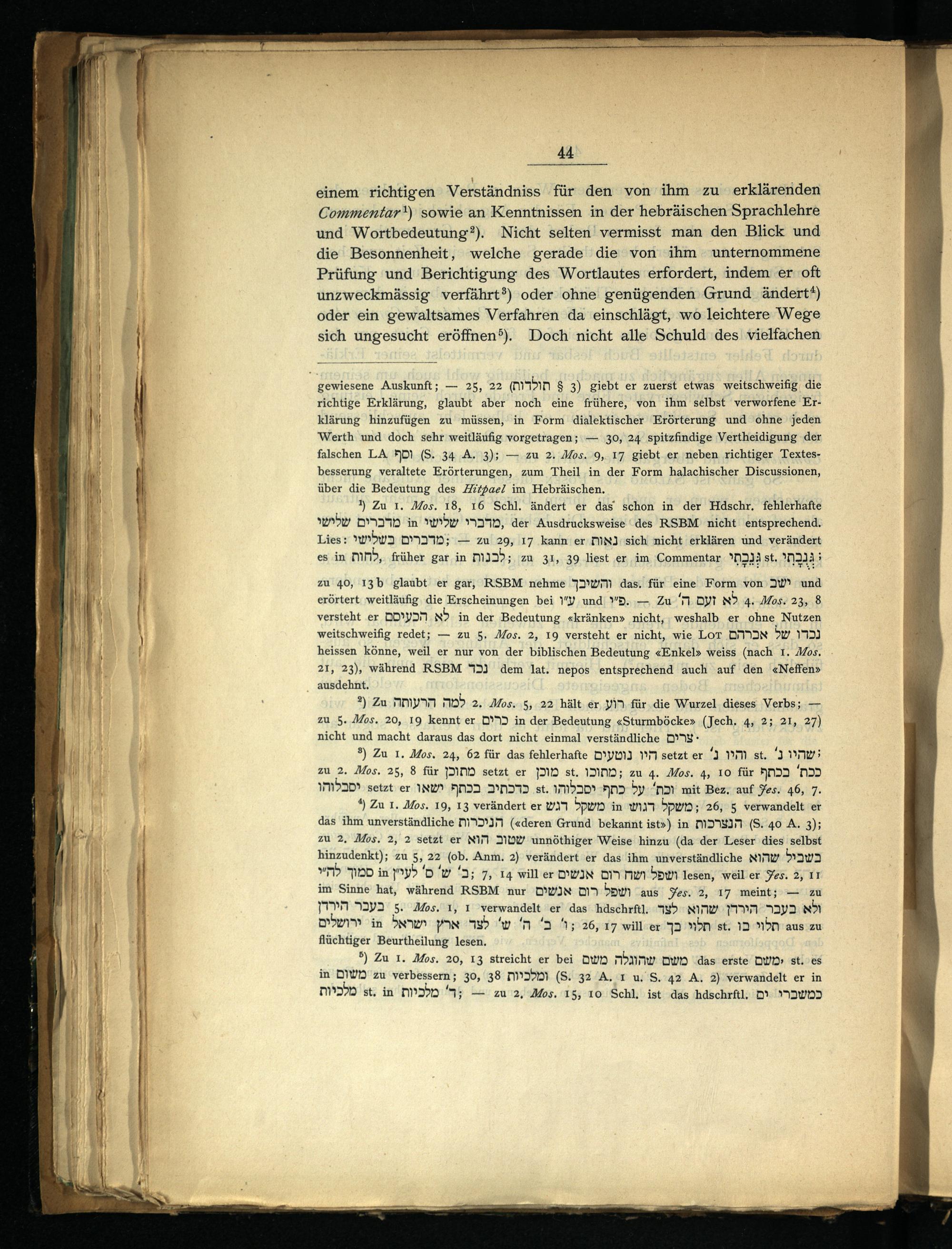 zu 40, 13b glaubt er gar, RSBM nehme 72% das, für eine Form von IW° und erörtert ‚weitläufig die Erscheinungen bei 1” und BB.— Zu Kr DT x 4. Mos. 23, 8 versteht er DD’VDNM Ni in der Bedeutung«kränken» nicht, weshalb er ohne Nutzen weitschweifig redet;— zu 5, Mos. 2, 19 versteht er nicht, wie LoT DMIIN bw 19 heissen könne, weil er nur von der biblischen Bedeutung«Enkel» weiss(nach 1. Mos, 21, 23), während RSBM 17523 dem lat. nepos entsprechend auch auf den«Neffen»