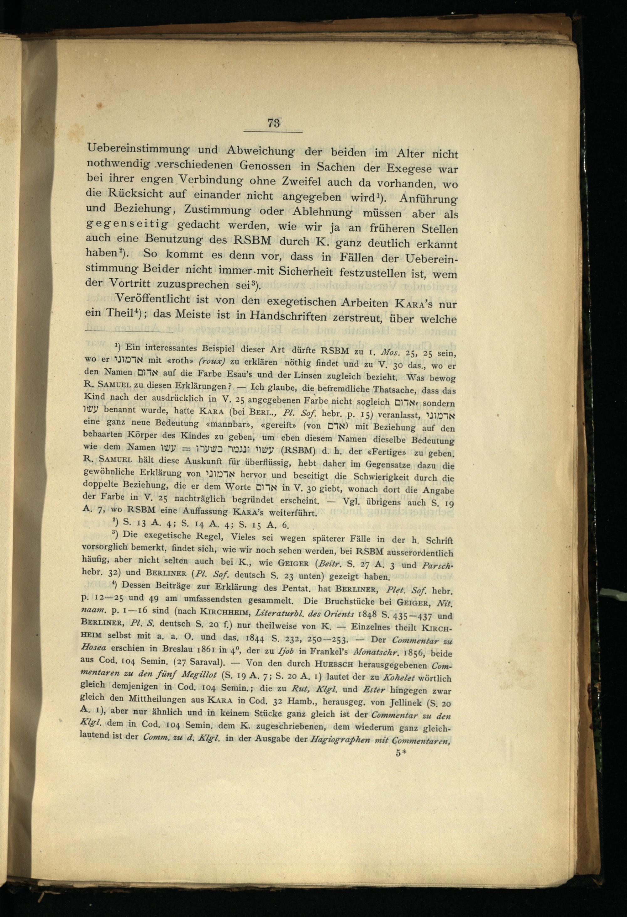 ?) Die exegetische Regel, Vieles sei wegen späterer Fälle in der h. Schrift vorsorglich bemerkt, findet sich, wie wir noch sehen werden, bei RSBM ausserordentlich häufig, aber nicht selten auch bei K., wie GEIGER(Beitr, S, 27 A. 3 und Parschhebr, 32) und BERLINER(ZZ, Sof. deutsch S, 23 unten) gezeigt haben,