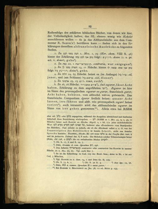 Reihenfolge der erklärten biblischen Bücher, von denen wir hier, der Vollständigkeit halber, das HL. ebenso wenig wie Kohelet ausschliessen wollen— da ja das Altfranzösische aus dem Commentar R. SaAmvzı’s!) herrühren kann— finden sich in den Erklärungen desselben altfranzösische Ausdrücke zu folgenden Stellen.
