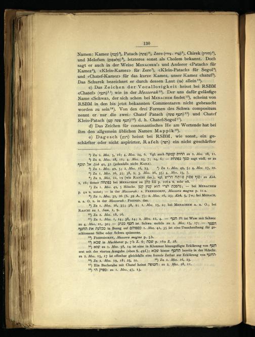 c) Das Zeichen der Vocallosigkeit heisst bei RSBM <Chatef»(zun)!!) wie in der Massorah*?). Der uns dafür geläufige Name«Schwas», der sich schon bei MEnACHEM findet!?), scheint von RSBM in den bis: jetzt bekannten Commentaren nicht gebraucht worden zu sein!t). Von den drei Formen des Schwa compositum nennt er; nur die zwei: Chatef Patach(mn5 Aym)!”) und Chatef Klein-Patach(wp nnd Aum)!%) d. h.ı Chatef-Segol*”).