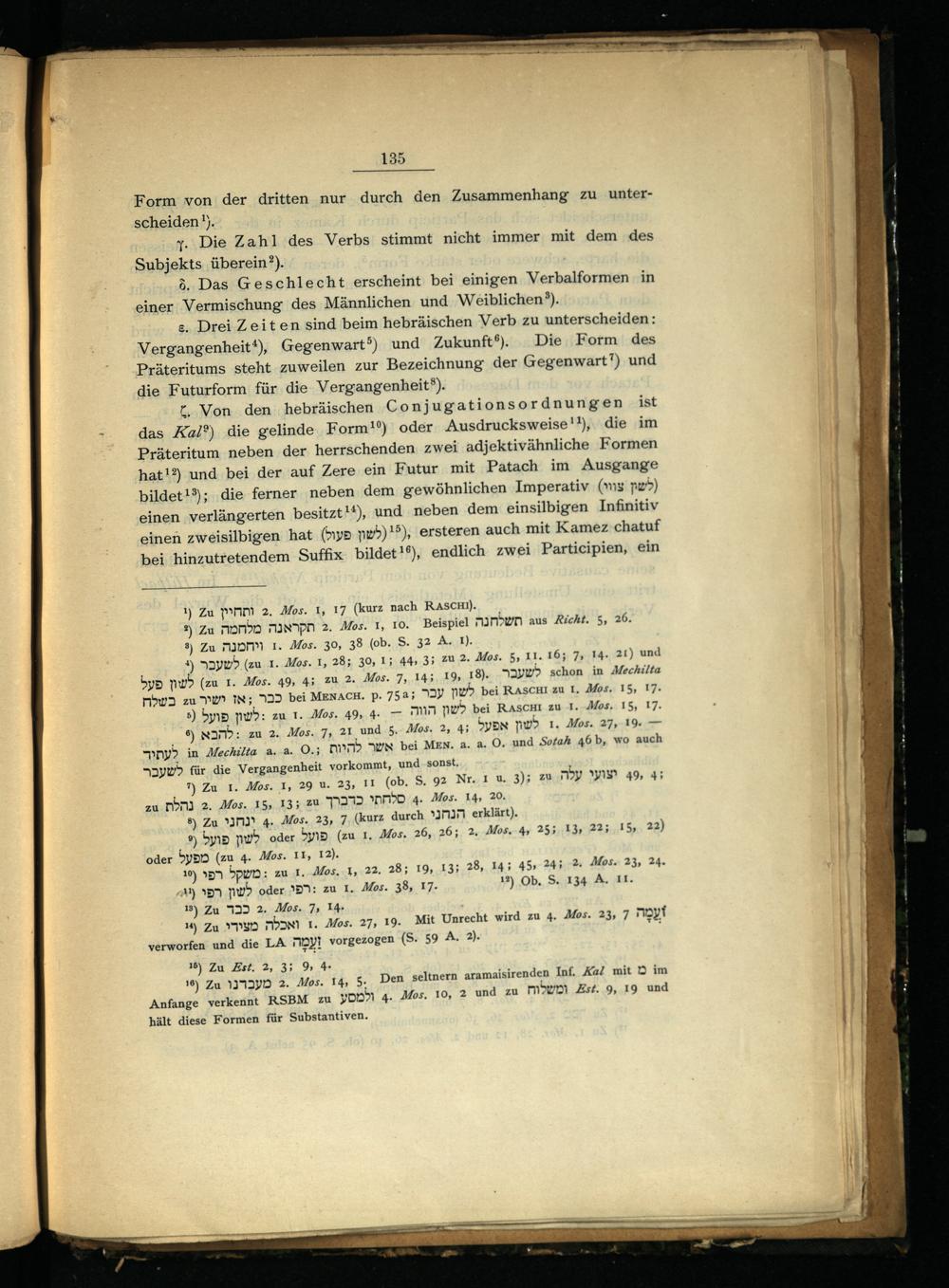 e. Drei Zeit en sind beim hebräischen Verb zu unterscheiden: Vergangenheit“), Gegenwart®) und Zukunft‘). Die Form des Präteritums steht zuweilen zur Bezeichnung der Gegenwart”) und die Futurform für die Vergangenheit®).