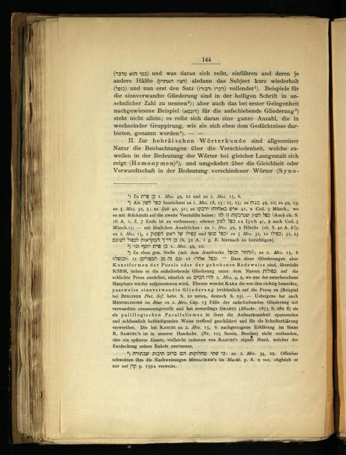 II. Zur hebräischen Wörterkunde sind allgemeiner Natur die Beobachtungen über die Verschiedenheit, welche zuweilen in der Bedeutung der Wörter bei gleicher Lautgestalt sich zeigt(Homonymen)®), und umgekehrt über die Gleichheit oder Verwandtschaft in der Bedeutung‘ verschiedener Wörter(Syno