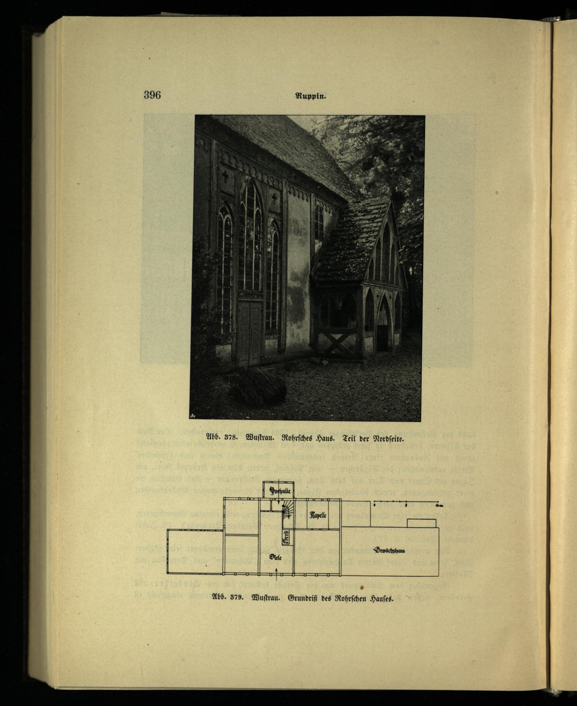 Abb. 378. Wuſtrau. Rohrſches Haus. Teil der Nordſeite. Abb. 378. Wuſtrau. Grundriß des Rohrſchen Hauſes.