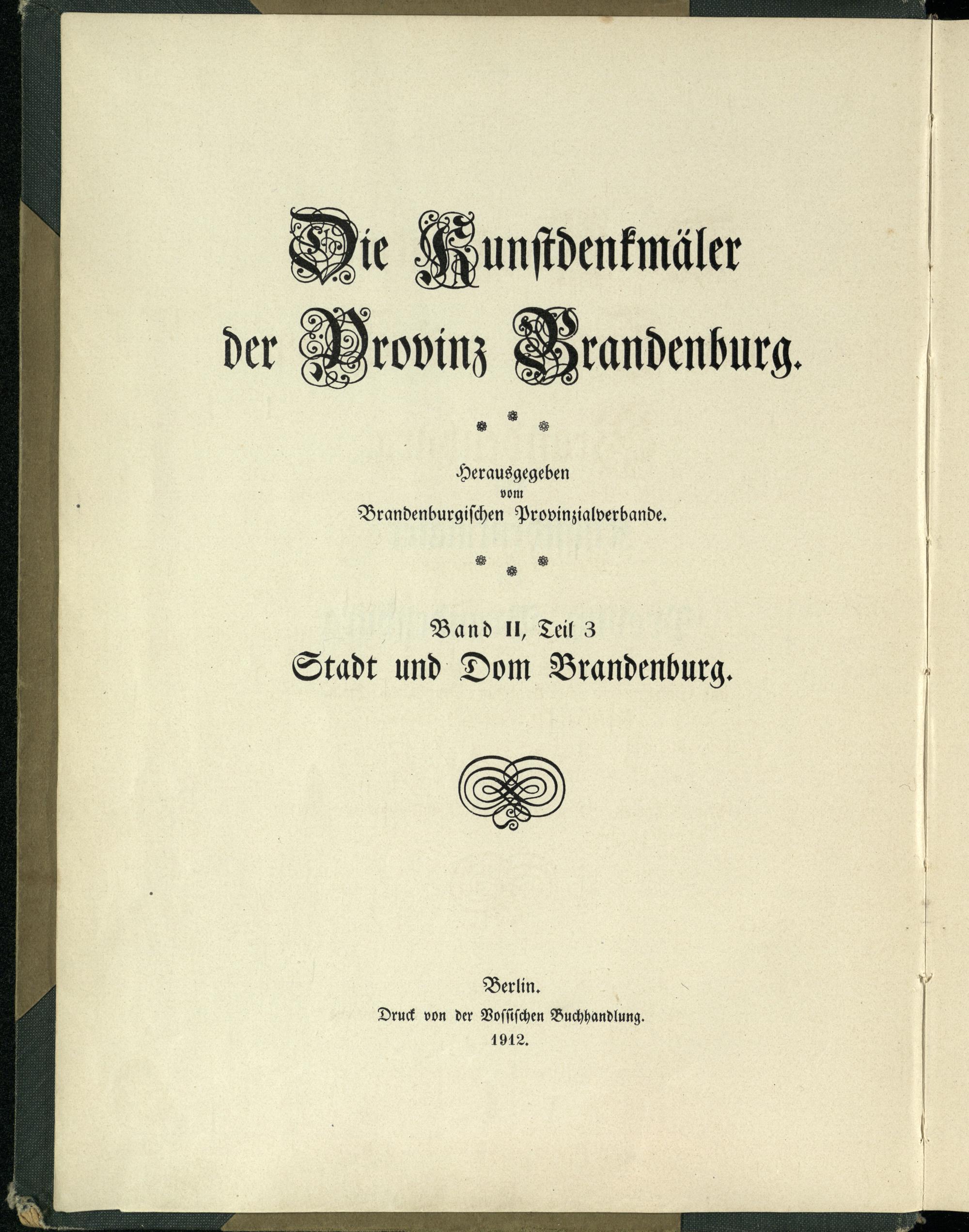 Die Cunfdentmäter 9 rovinz Brandenburg . 9 8 * Herausgegeben vom Brandenburgiſchen Provinzialverbande. Band I, Teil 3 Stadt und Dom Brandenburg . ® Druck von der Voſſiſchen Buchhandlung. Berlin . 1912.|