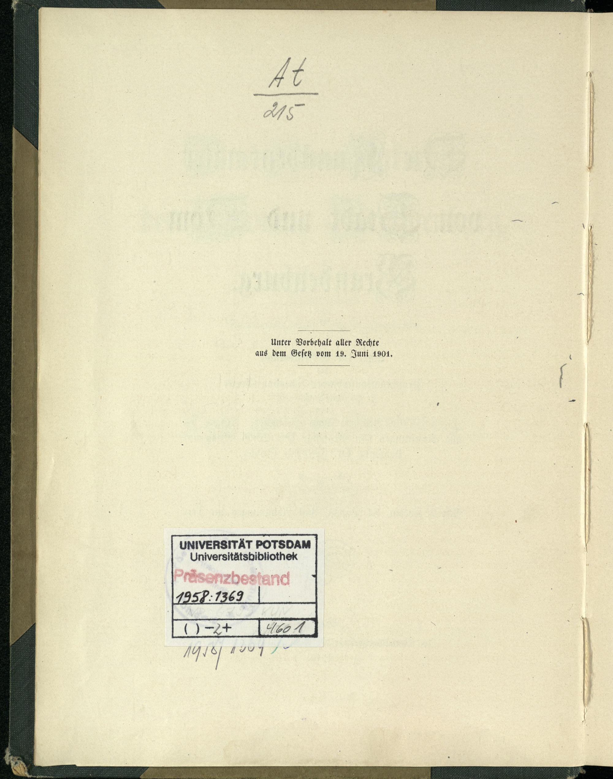 Unter Vorbehalt aller Rechte aus dem Geſetz vom 19. Juni 1901. UNIVERSITÄT POTSDAM Universitätsbibliothek d 197 ö. — —— 2— 8
