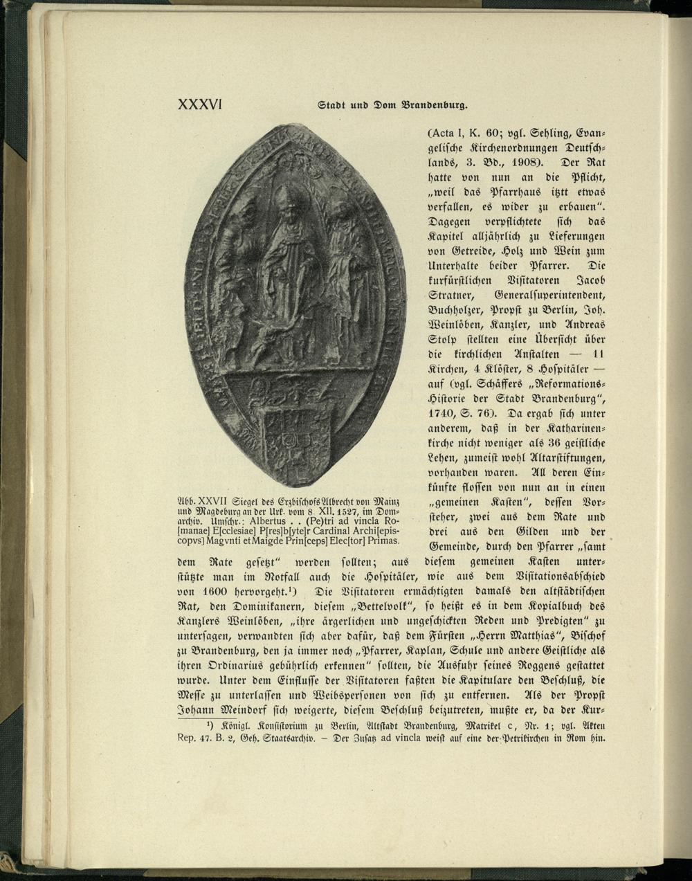 .!| künfte floſſen von nun an in einen Abb. XXVlIlI Siegel des Erzbiſchofs Albrecht von Mainz „gemeinen Kaſten“, deſſen Vor—