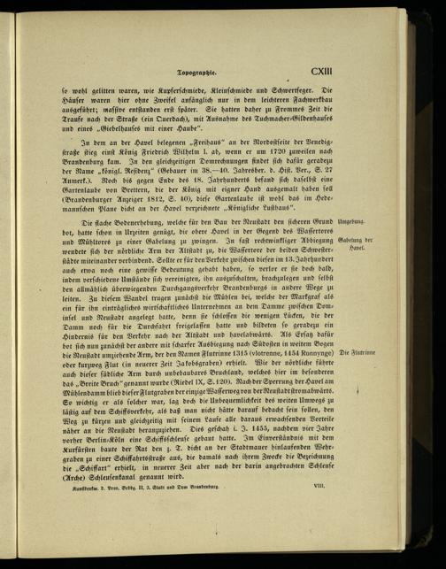 Die flache Bodenerhebung, welche für den Bau der Neuſtadt den ſicheren Grund bot, hatte ſchon in Urzeiten genügt, die obere Havel in der Gegend des Waſſertores und Mühltores zu einer Gabelung zu zwingen. In faſt rechtwinkliger Abbiegung