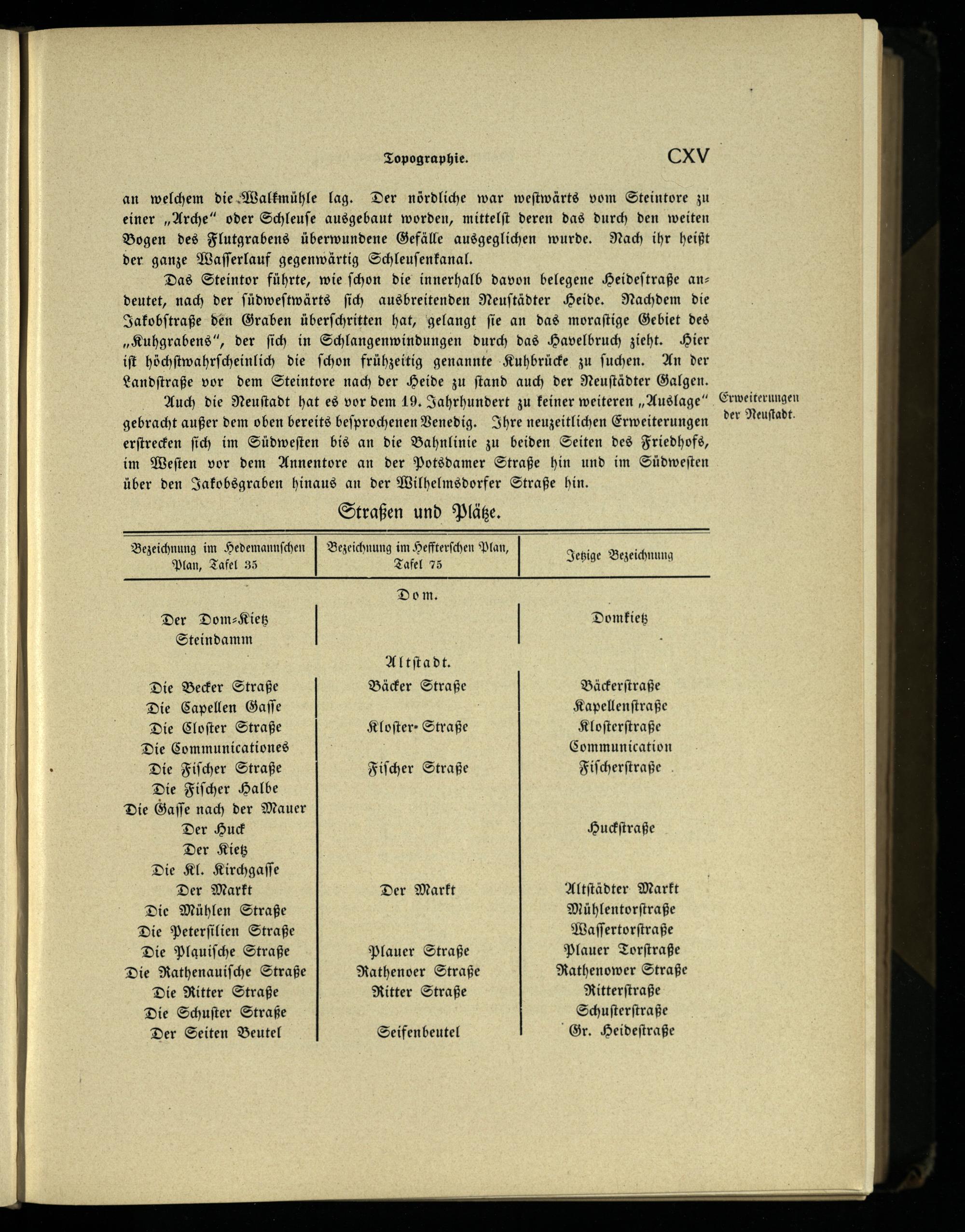 Auch die Neuſtadt hat es vor dem 19. Jahrhundert zu keiner weiteren„Auslage“ gebracht außer dem oben bereits beſprochenen Venedig . Ihre neuzeitlichen Erweiterungen erſtrecken ſich im Südweſten bis an die Bahnlinie zu beiden Seiten des Friedhofs, im Weſten vor dem Annentore an der Potsdamer Straße hin und im Südweſten über den Jakobsgraben hinaus an der Wilhelmsdorfer Straße hin.
