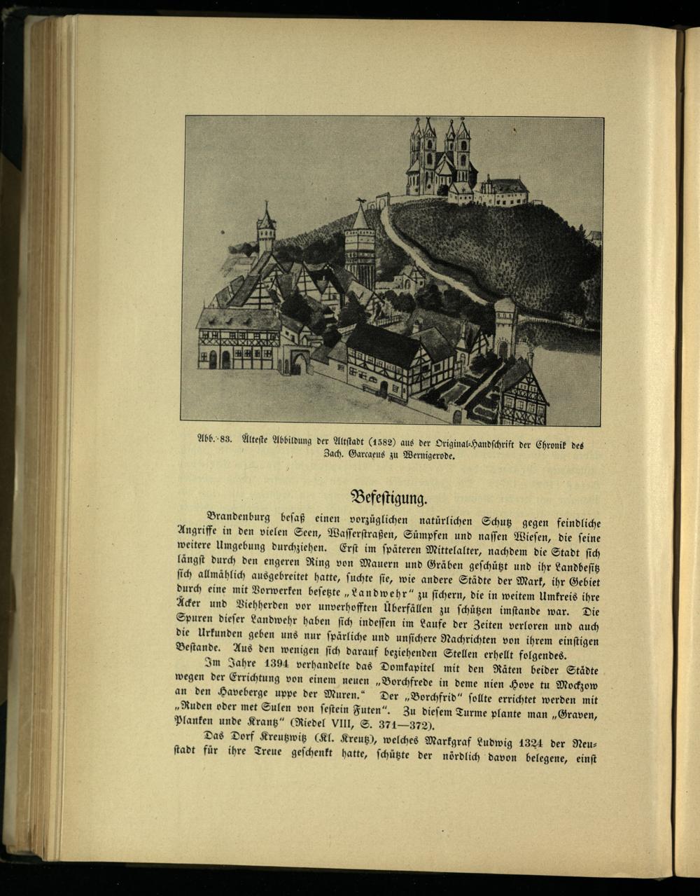 Abb. 83. Alteſte Abbildung der Altſtadt(1582) aus der Original⸗Handſchrift der Chronik des Zach. Garcaeus zu Wernigerode .
