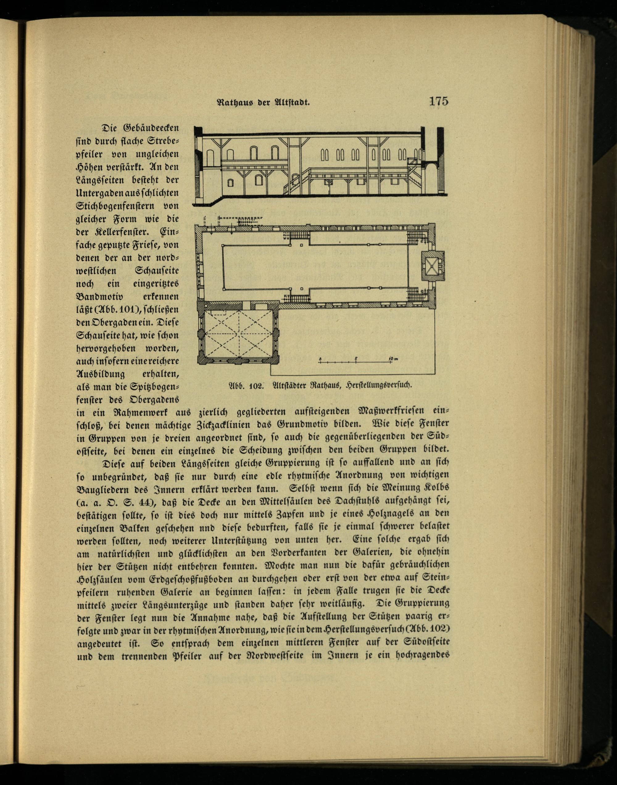 als man die Spitzbogen⸗ Abb. 102. Altſtädter Rathaus, Herſtellungsverſuch.