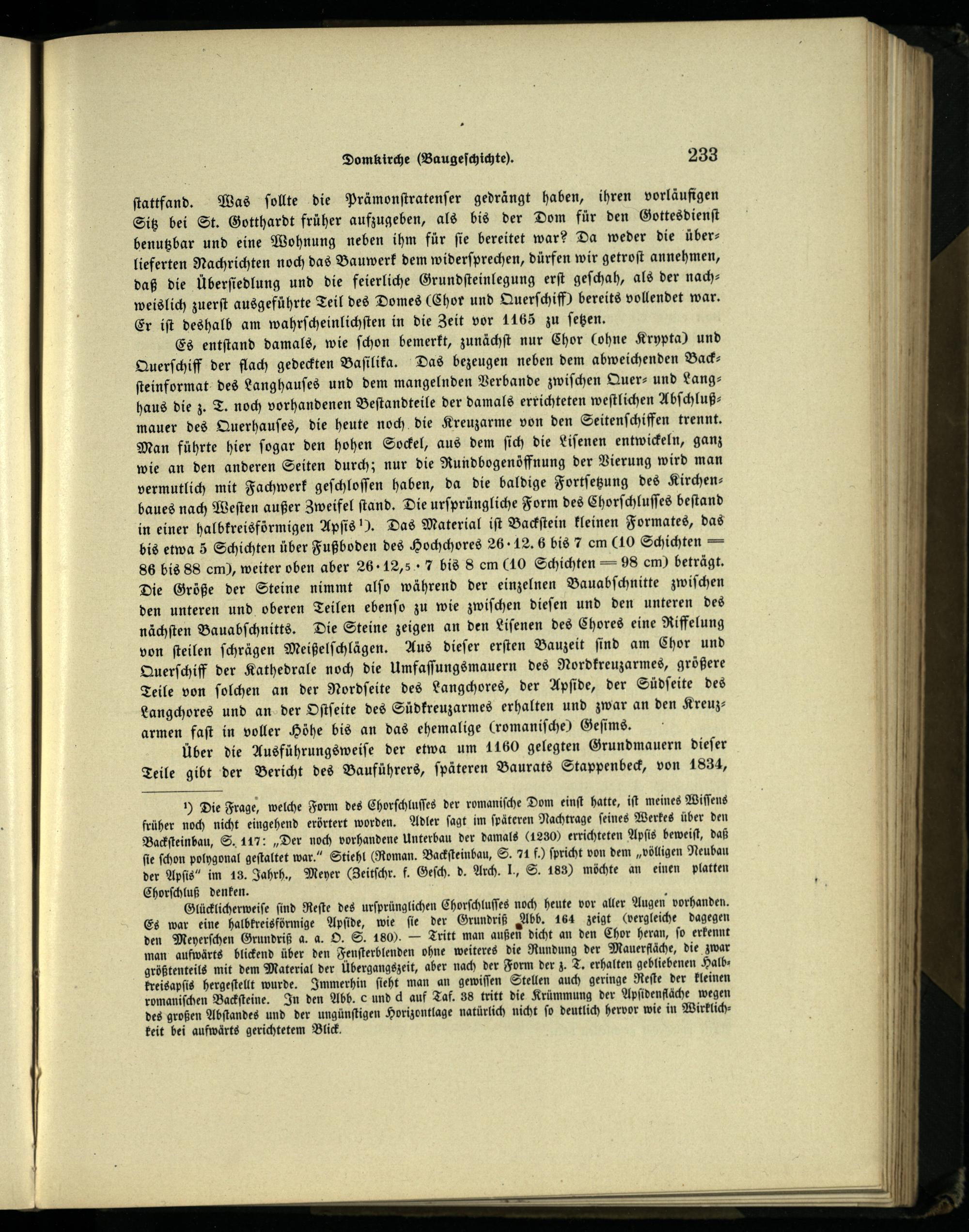 Über die Ausführungsweiſe der etwa um 1160 gelegten Grundmauern dieſer Teile gibt der Bericht des Bauführers, ſpäteren Baurats Stappenbeck, von 1834,