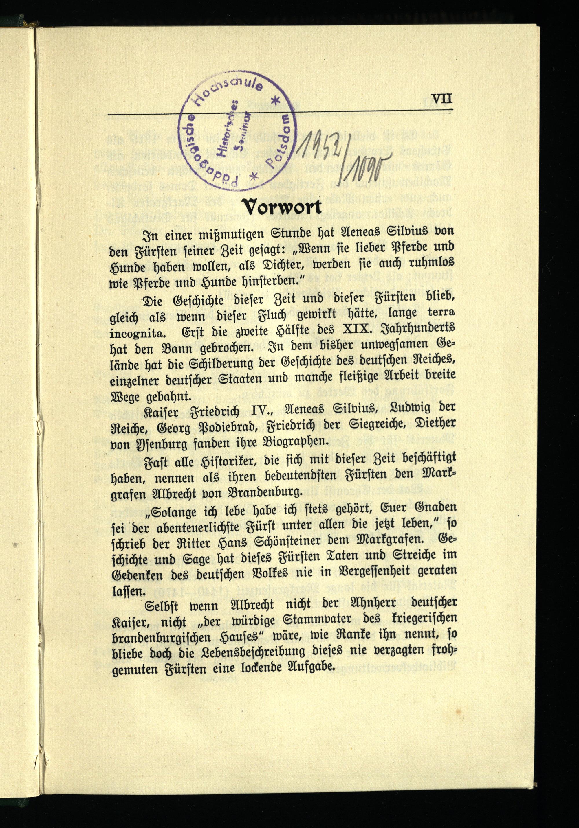 Faſt alle Hiſtoriker, die ſich mit dieſer Zeit beſchäftigt haben, nennen als ihren bedeutendſten Fürſten den Markgrafen Albrecht von Brandenburg .