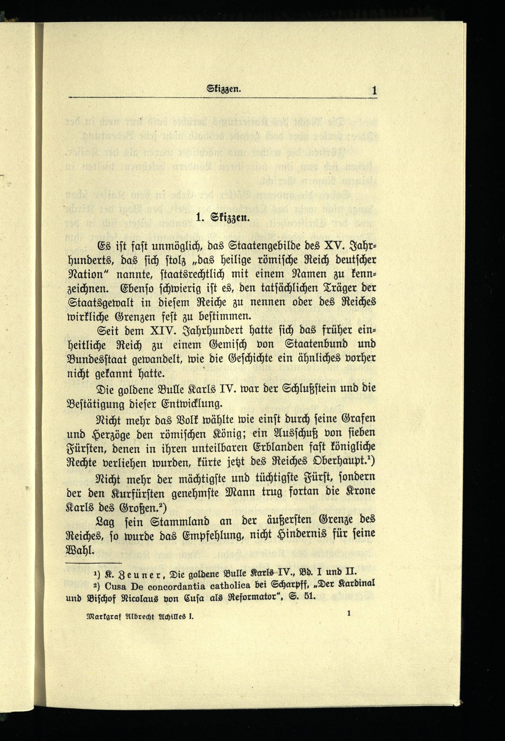 ) K. Zeuner, Die goldene Bulle Karls IV., Bd. I und II. 2) Cusa De concordantia catholica bei Scharpff,„Der Kardinal und Biſchof Nicolaus von Cuſa als Reformator“, S. 51.