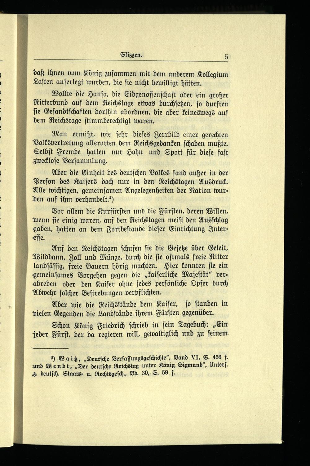 Aber die Einheit des deutſchen Volkes fand außer in der Perſon des Kaiſers doch nur in den Reichstagen Ausdruck. Alle wichtigen, gemeinſamen Angelegenheiten der Nation wurden auf ihm verhandelt.“)