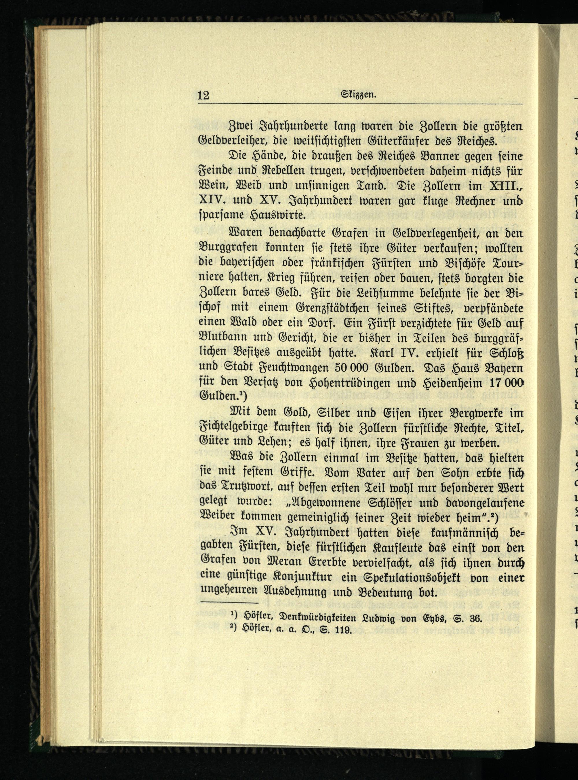 Mit dem Gold, Silber und Eiſen ihrer Bergwerke im Fichtelgebirge kauften ſich die Zollern fürſtliche Rechte, Titel, Güter und Lehen; es half ihnen, ihre Frauen zu werben.