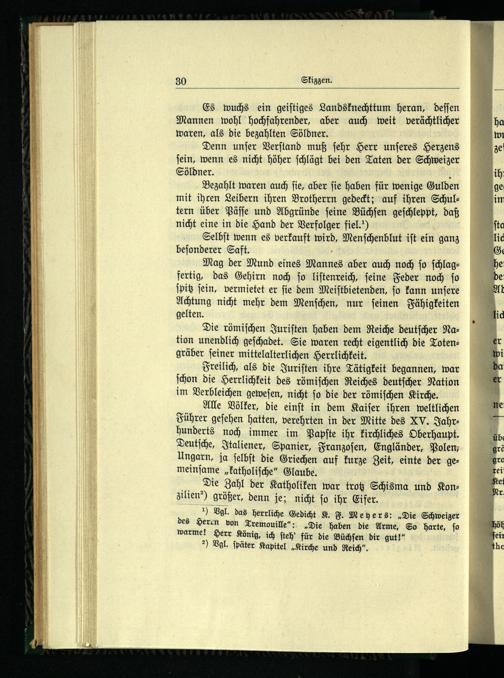 ) Vgl. das herrliche Gedicht K. F. Meyers:„Die Schweizer des Heren von Tremouille“:„Die haben die Arme, So harte, ſo