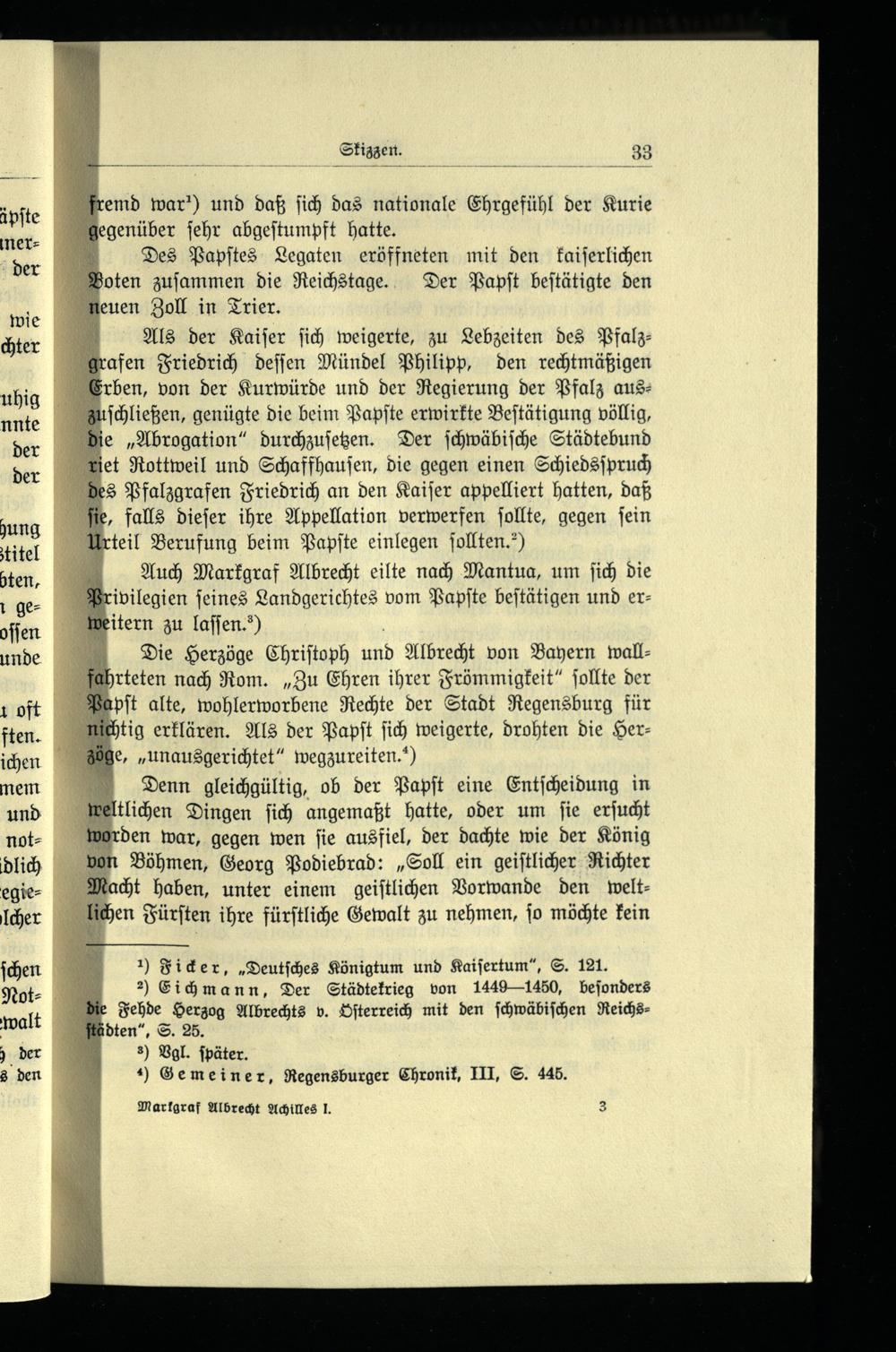 Ficker,„Deutſches Königtum und Kaiſertum“, S. 121. 2) Eichmann, Der St⸗ädtekrieg von 14491450, beſonders die Fehde Herzog Albrechts v. Oſterreich mit den ſchwäbiſchen Reichs